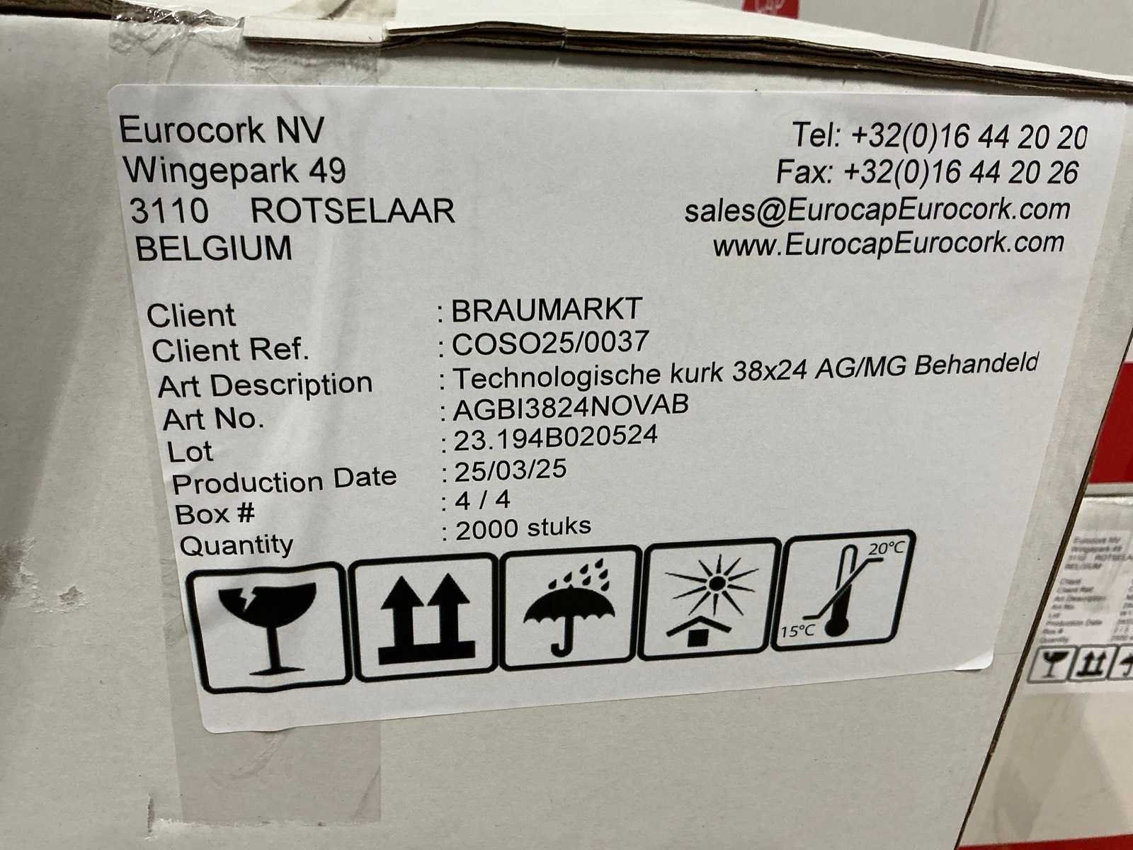 (kurk) technologische kurk 38x24 ag/mg behandeld (2000x)