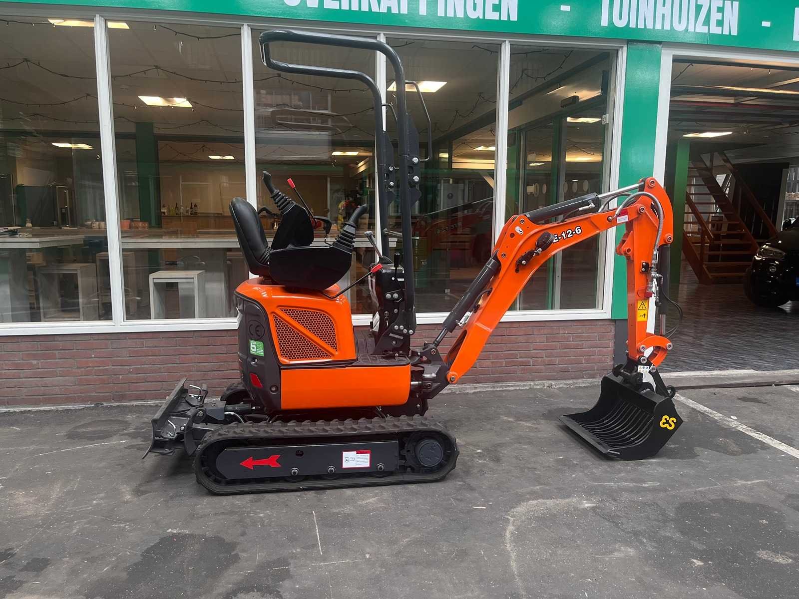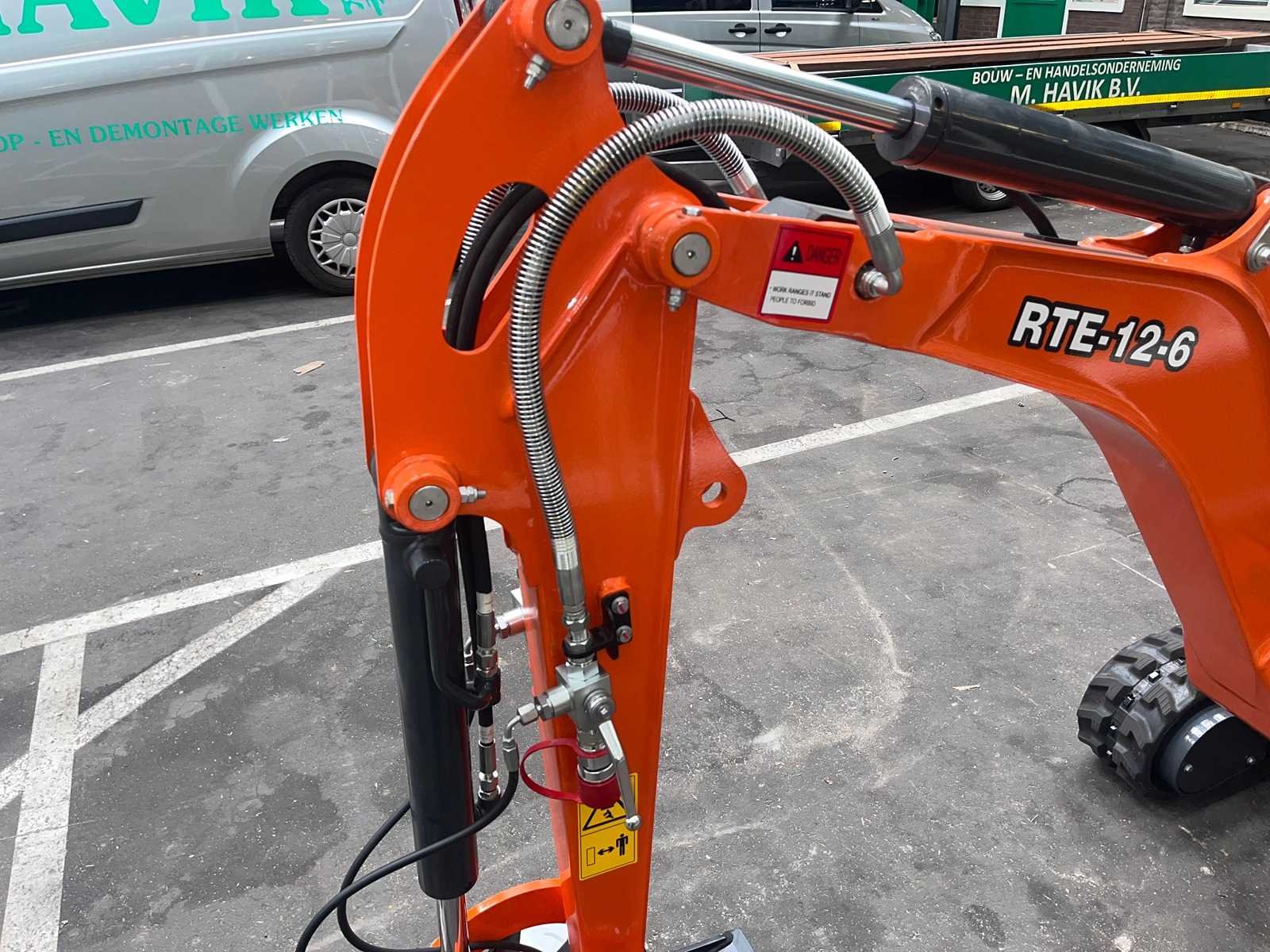 Minikraan RTE 12-6 met Kubota 3 cylinder motor; Hydraulische snelwissel CW0 met lasthaak; Servo bediening; 2 rijsnelheden; Verstelbare onderwagen / verstelbare rupsen; Extra hydraulische functie: dubbelwerkend; 3 graafbakken van GP; brede bak; smalle bak; puinriek Merk: RTE Type: 12-6 Bouwjaar: 2025 Serienummer: CX 2508089 Merk motor: Kubota Aantal cilinders: 3 Brandstof: Diesel Bedrijfsgewicht: 1100kg Max. werkbereik: 3300mm Max. graafdiepte: 1800mm Inclusief graafbak: 3 Afgelezen urenstand: 0