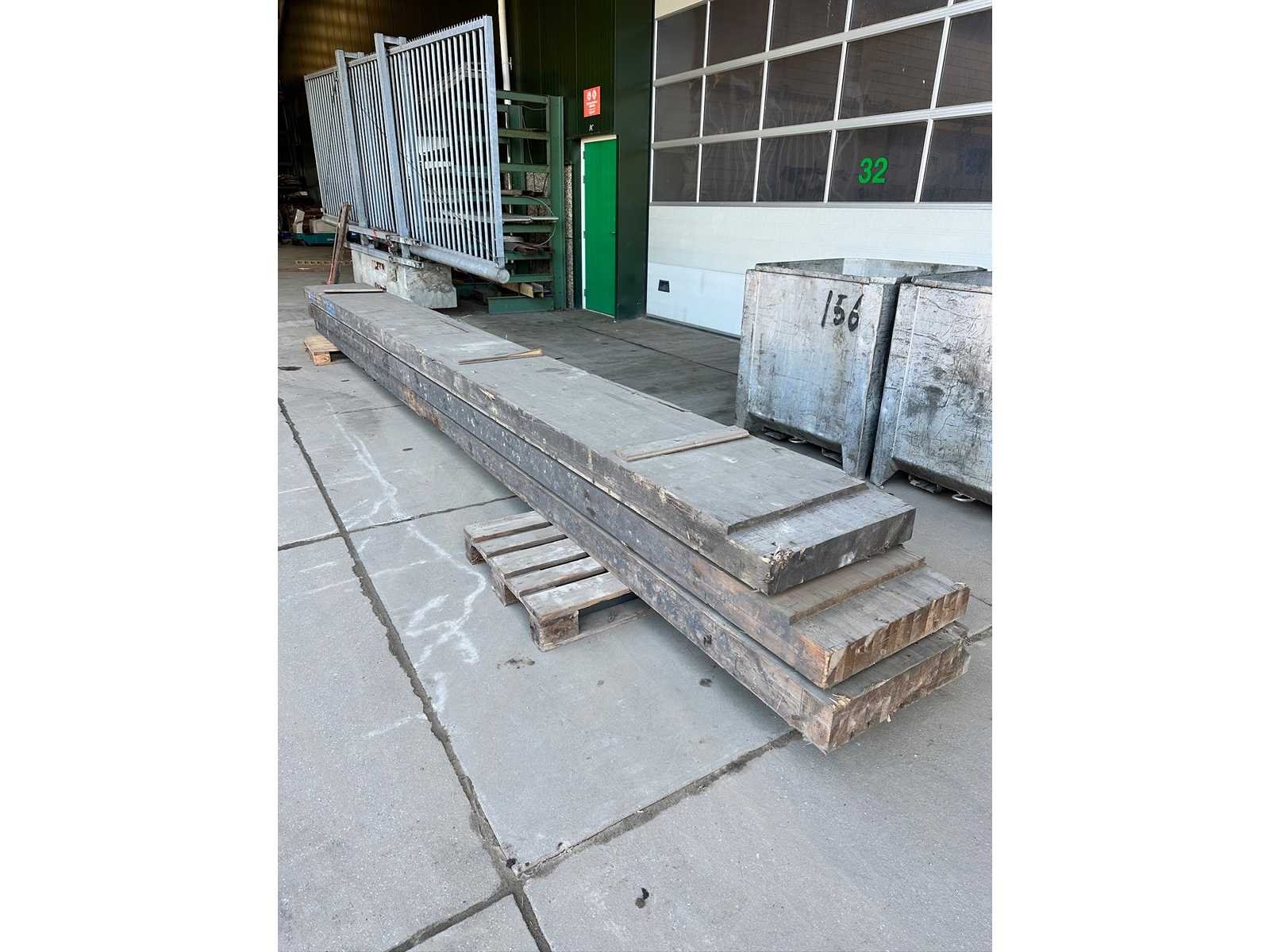 3 houten spanten nr 22 van 7 meter lang; kopmaat 140x600mm Lengte: 700cm Breedte: 60cm Hoogte: 14cm