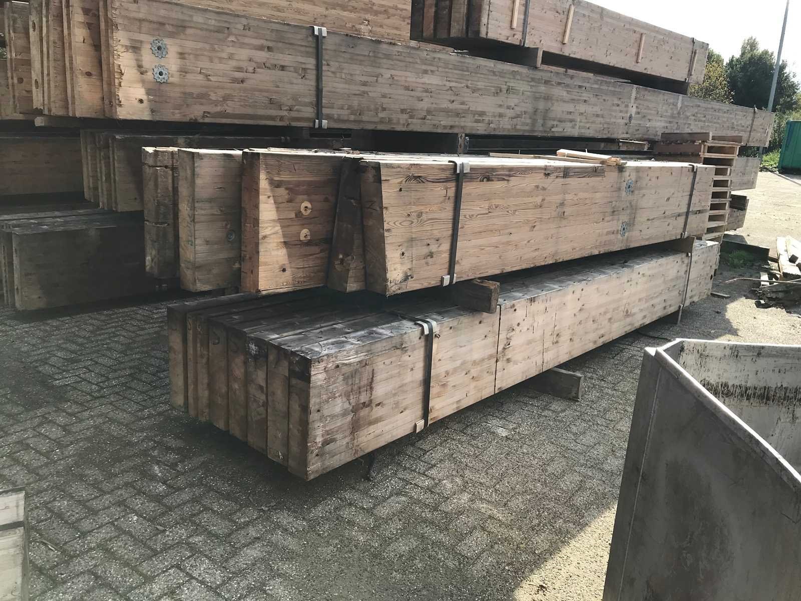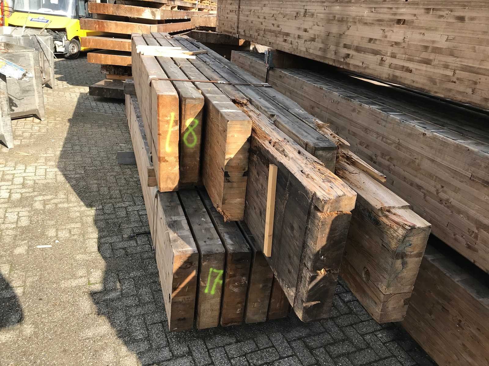 6 houten spanten Nr 18 ; kopmaat 13.5x55 centimeter; diverse lengtes Breedte: 13.5cm Hoogte: 55cm Materiaal: Hout