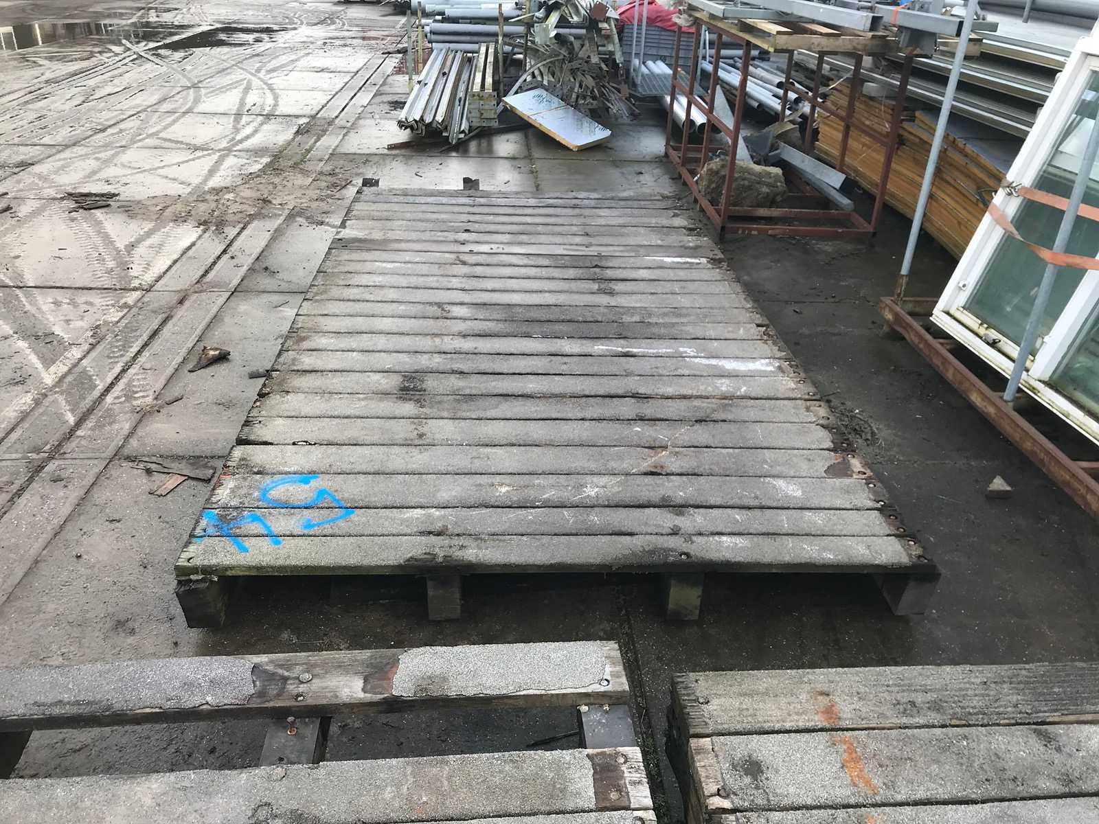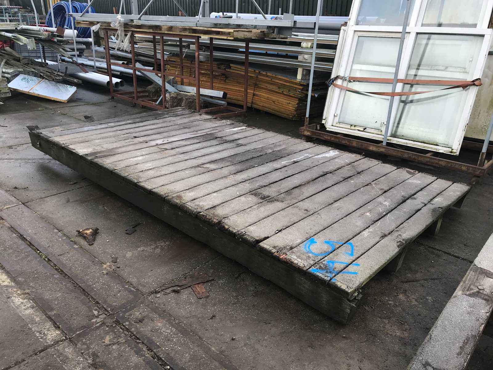 ; circa 4 meter lang en 2,35 meter breed; met 4 liggers; gebruikt Afmeting l: 4000mm Afmeting b: 2350mm