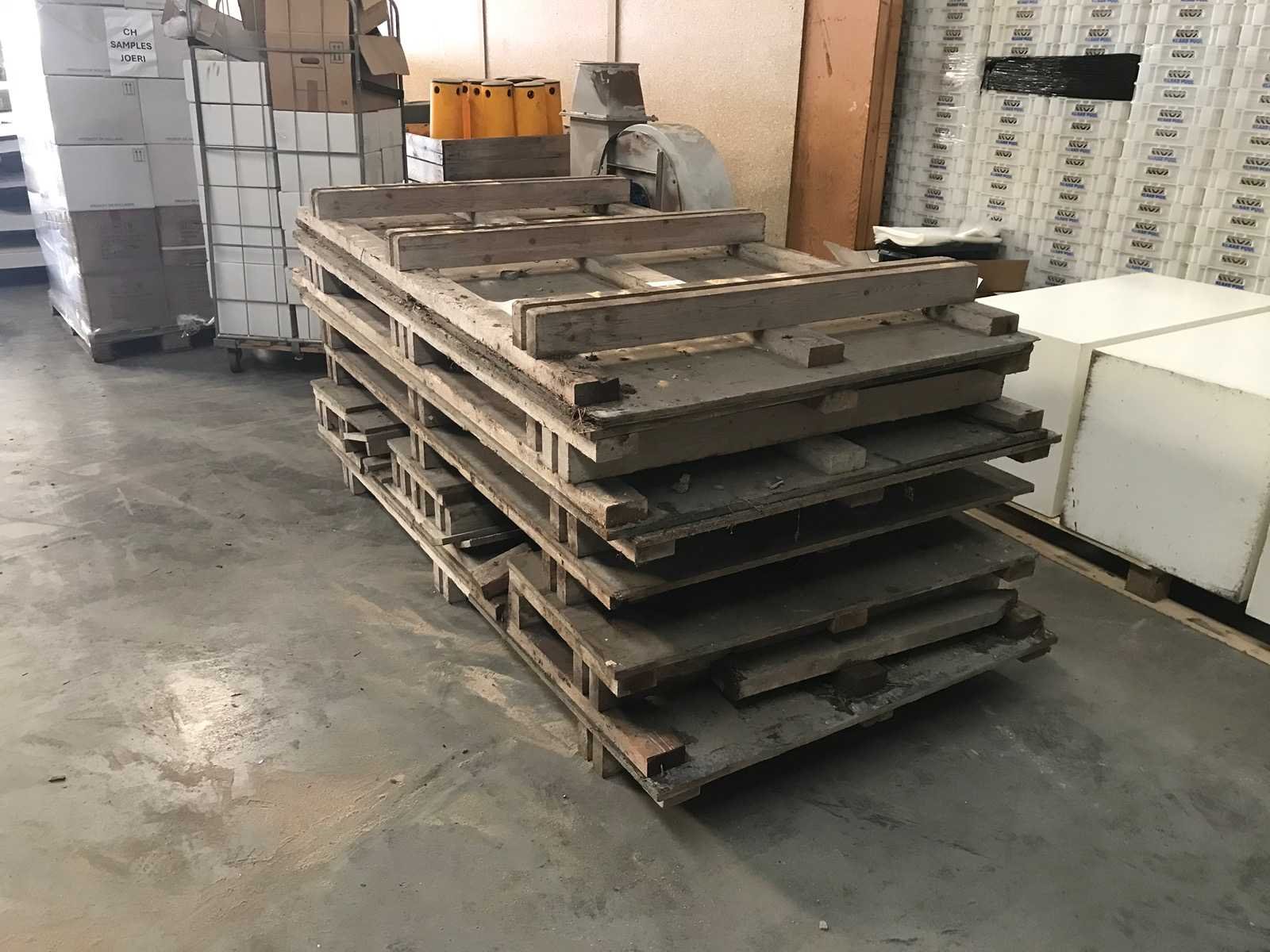 1 stapel beton stortschotten; diverse maten; grootste 125x250cm Merk: Beto Afmeting l: 2500mm Afmeting b: 1250mm Afmeting h: 165mm