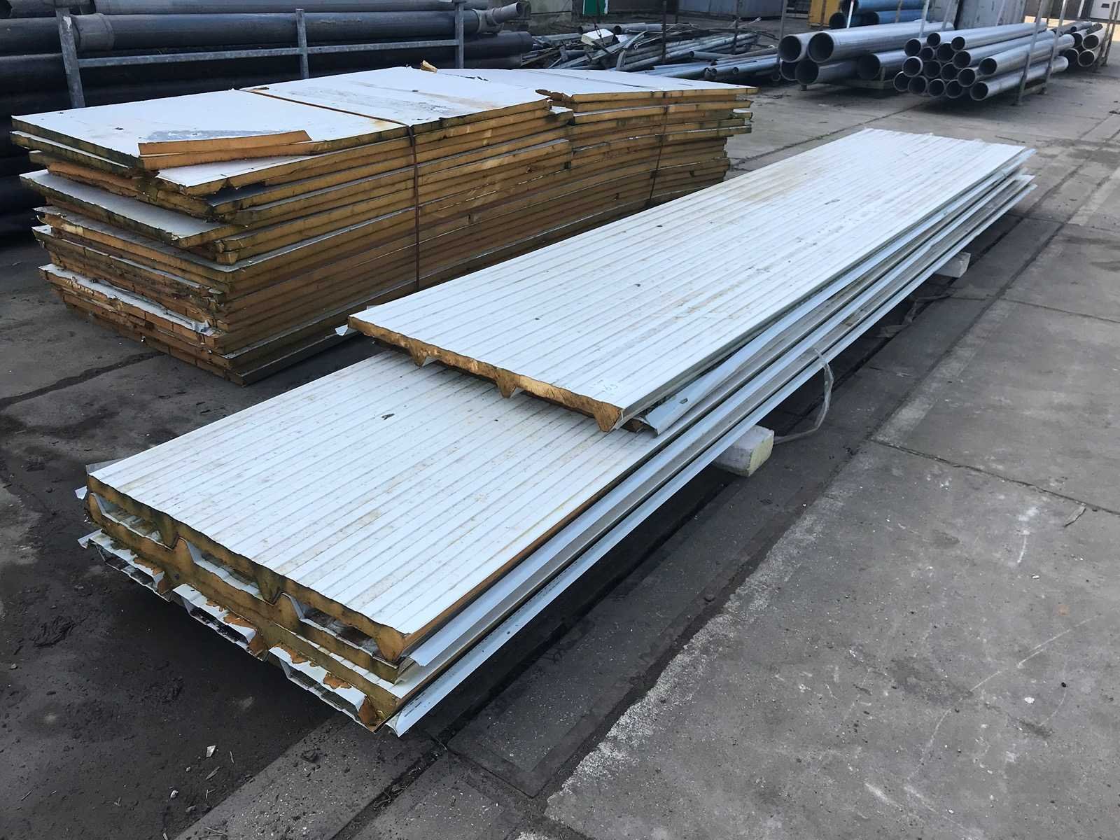 6 sandwichpanelen van 4cm dik; diverse lengtes Breedte: 100cm Hoogte: 4cm
