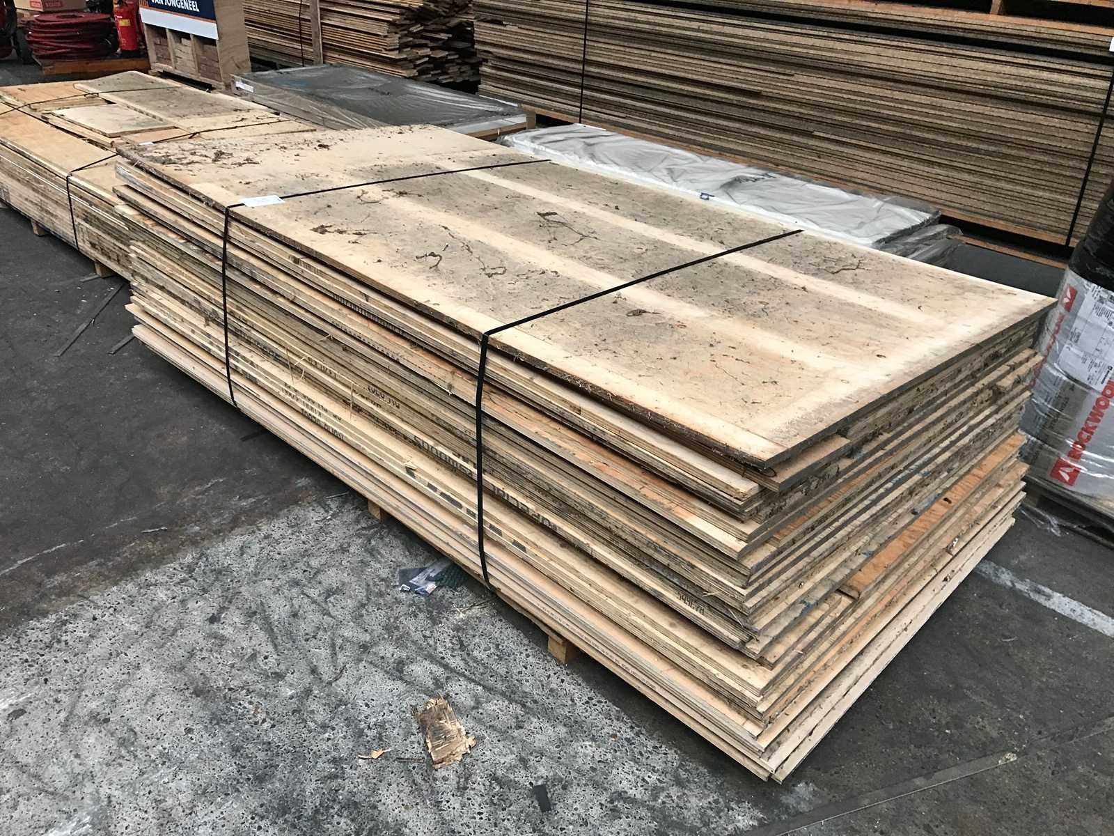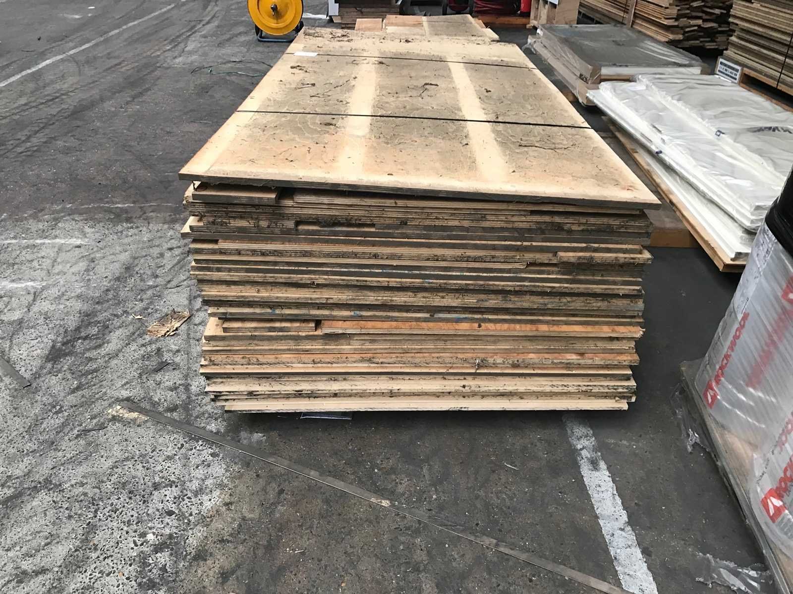 1 pallet met circa 35 platen gebruikt underlayment; 25x 18mm dik; 10x 12mm