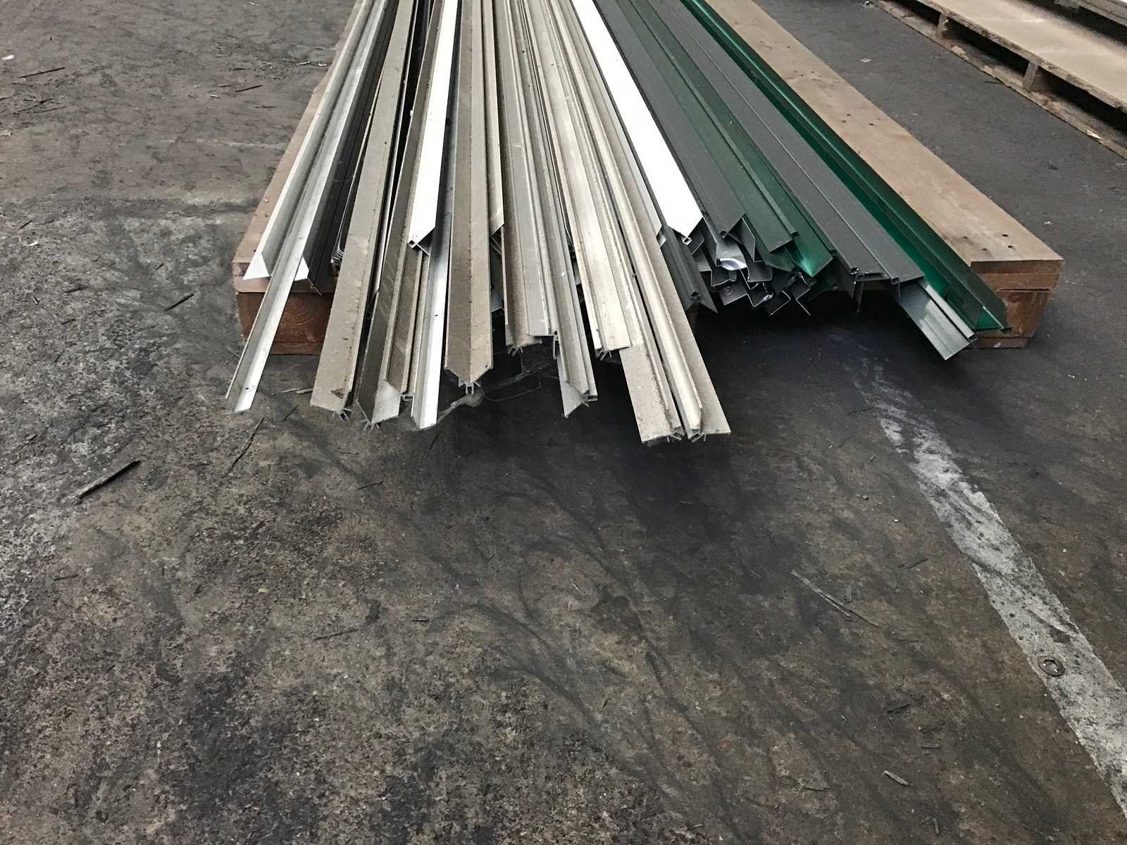 Pallet met divers aluminium zetwerk; waaromder hoeklijn en daktrim