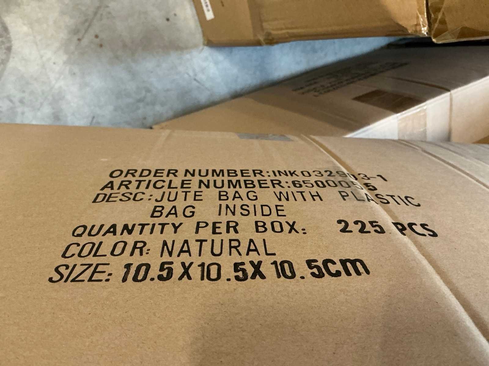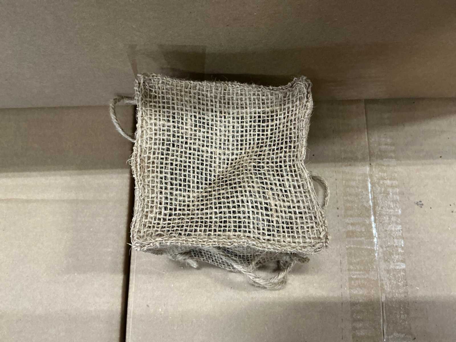 10,5x10,5x10,5cm. 900 jute bags.