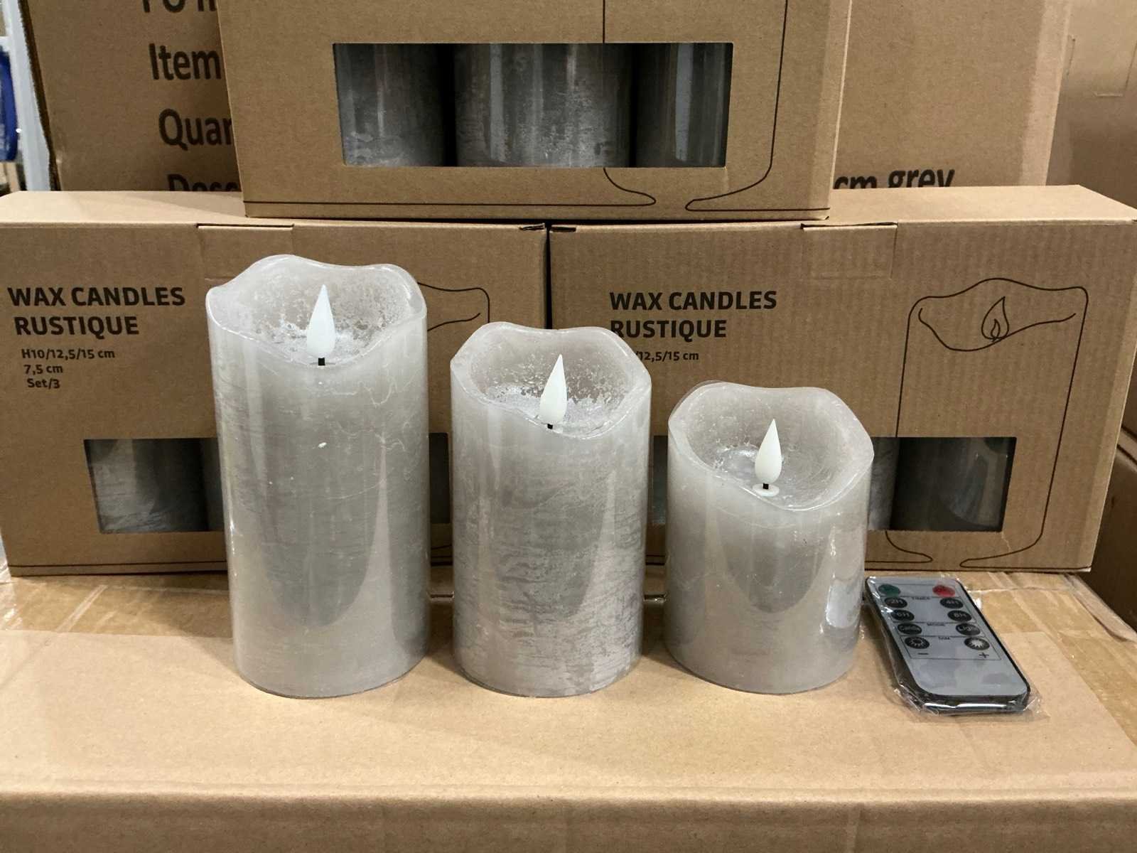 Partij wax candles rustique led d7,5xh10/12,5/15cm grey set/3 (93x)