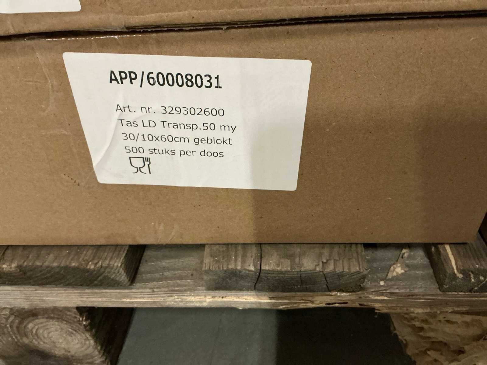 Partij tassen ld transparant 50 my 30/10x60cm geblokt (3300x)