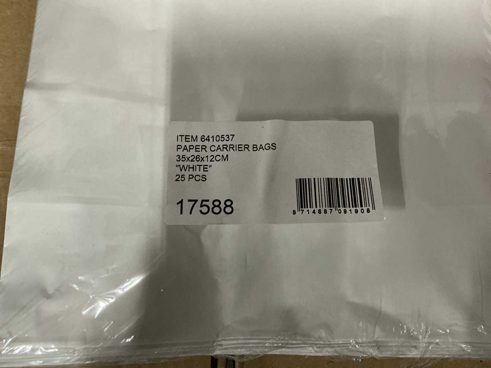 35x26x12cm. 4750 paper carrier bags.