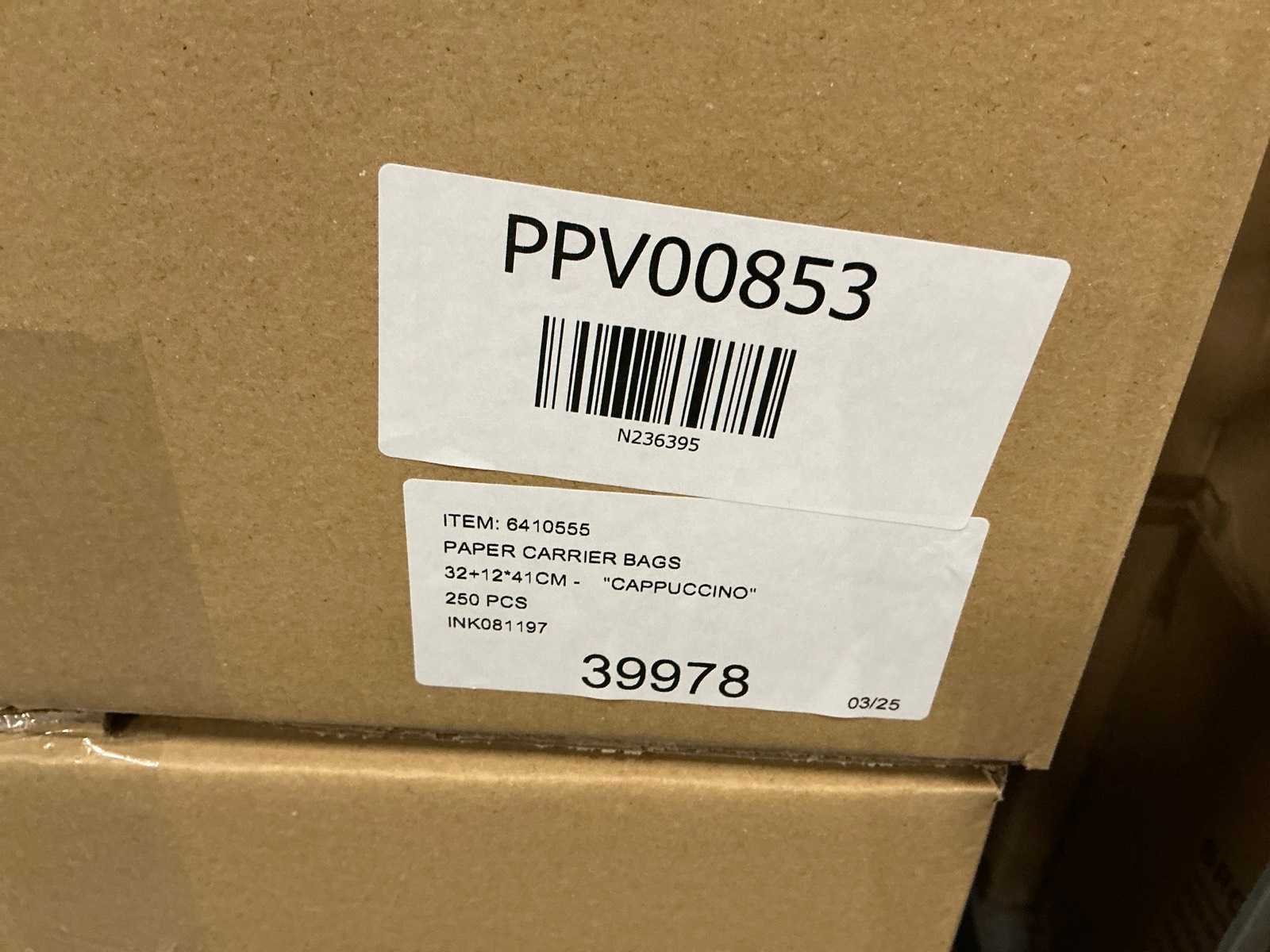 Partij paper carrier bags 32+12*41cm cappuccino (3000x)