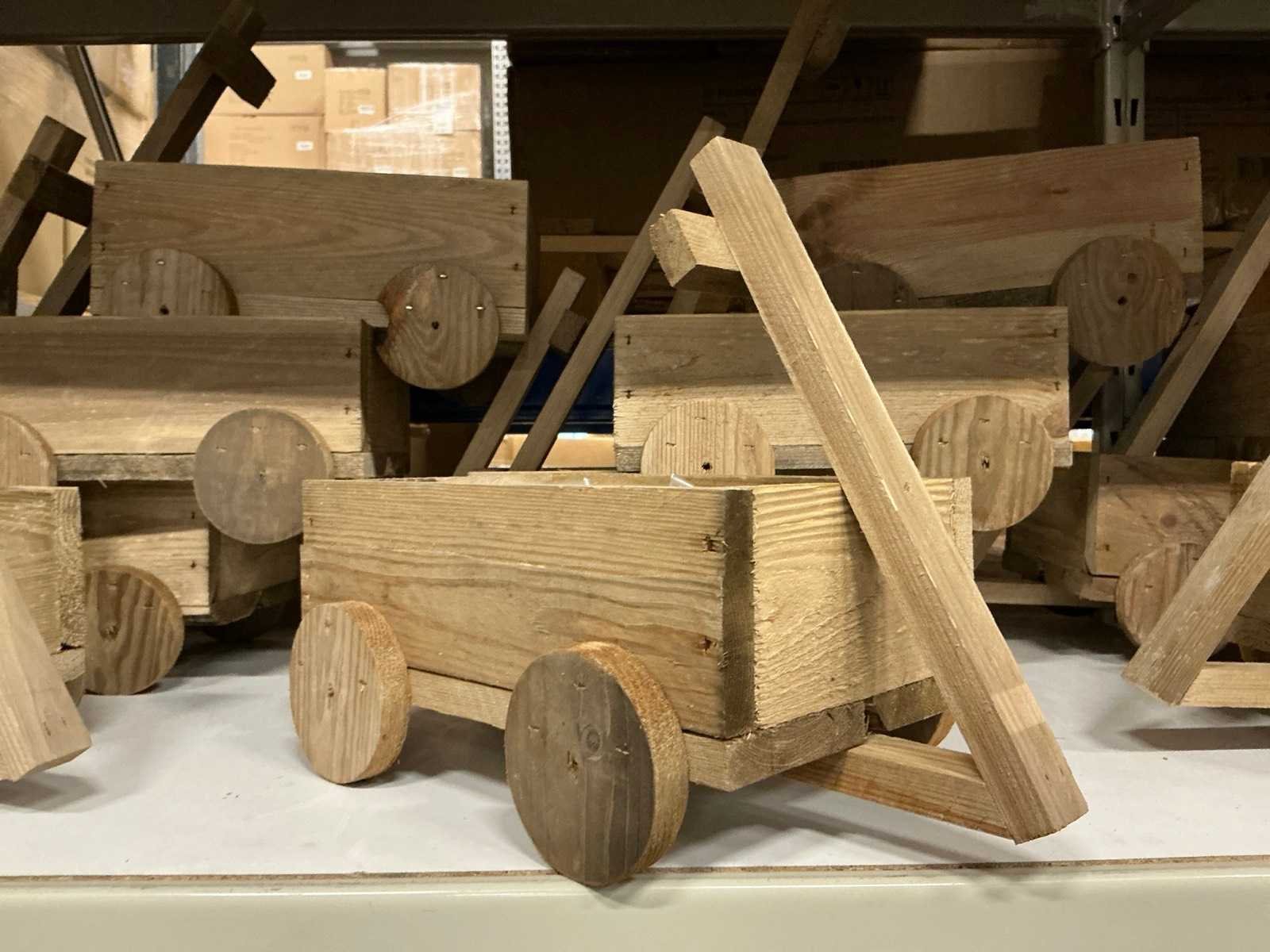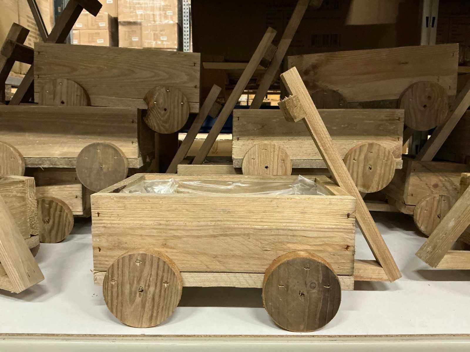 Partij trek karren 38x20x30cm hout met plantenbak (24x)