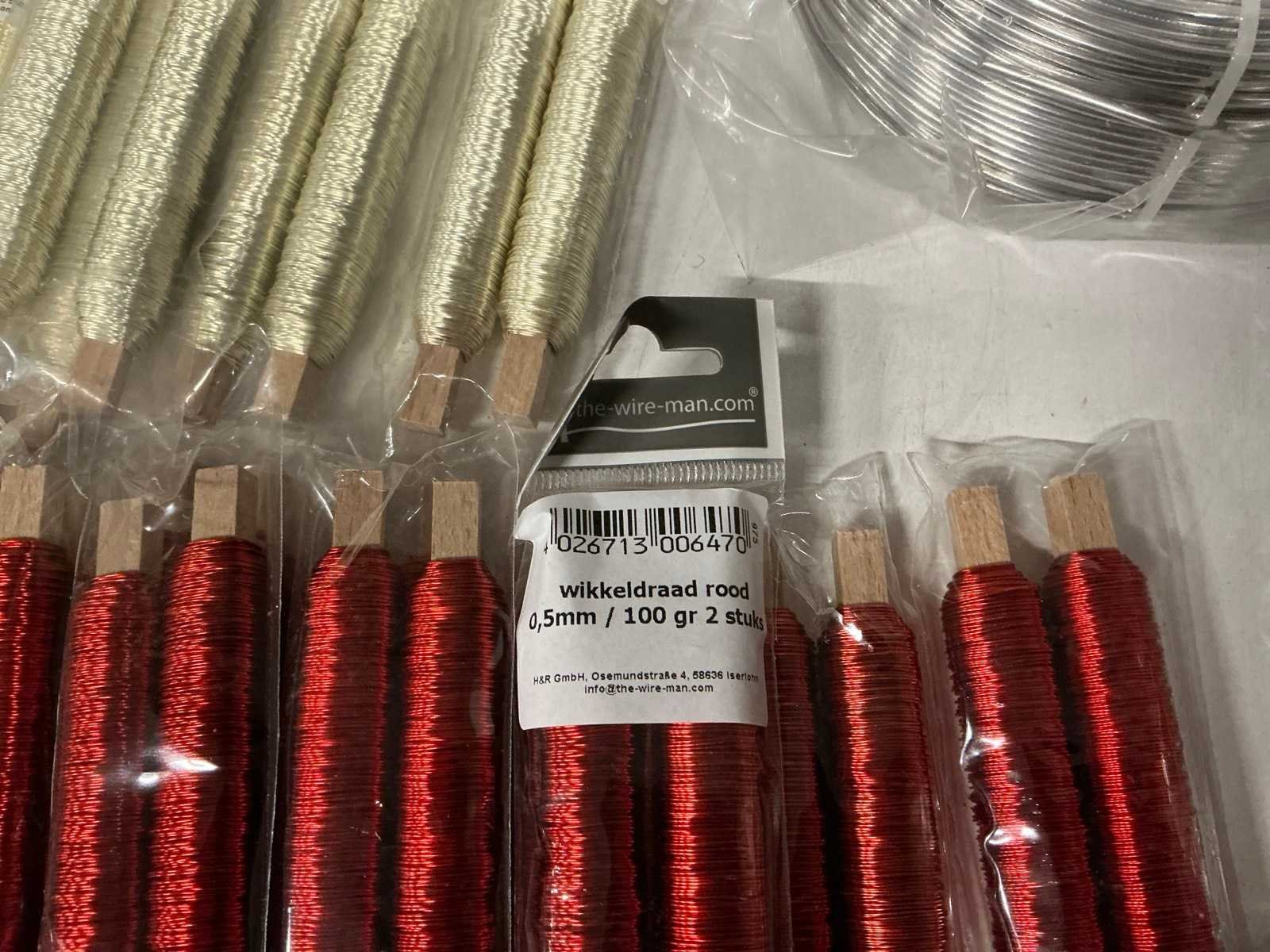 Partij diverse wikkeldraad, aluminium wire & glitterkits. (134x)