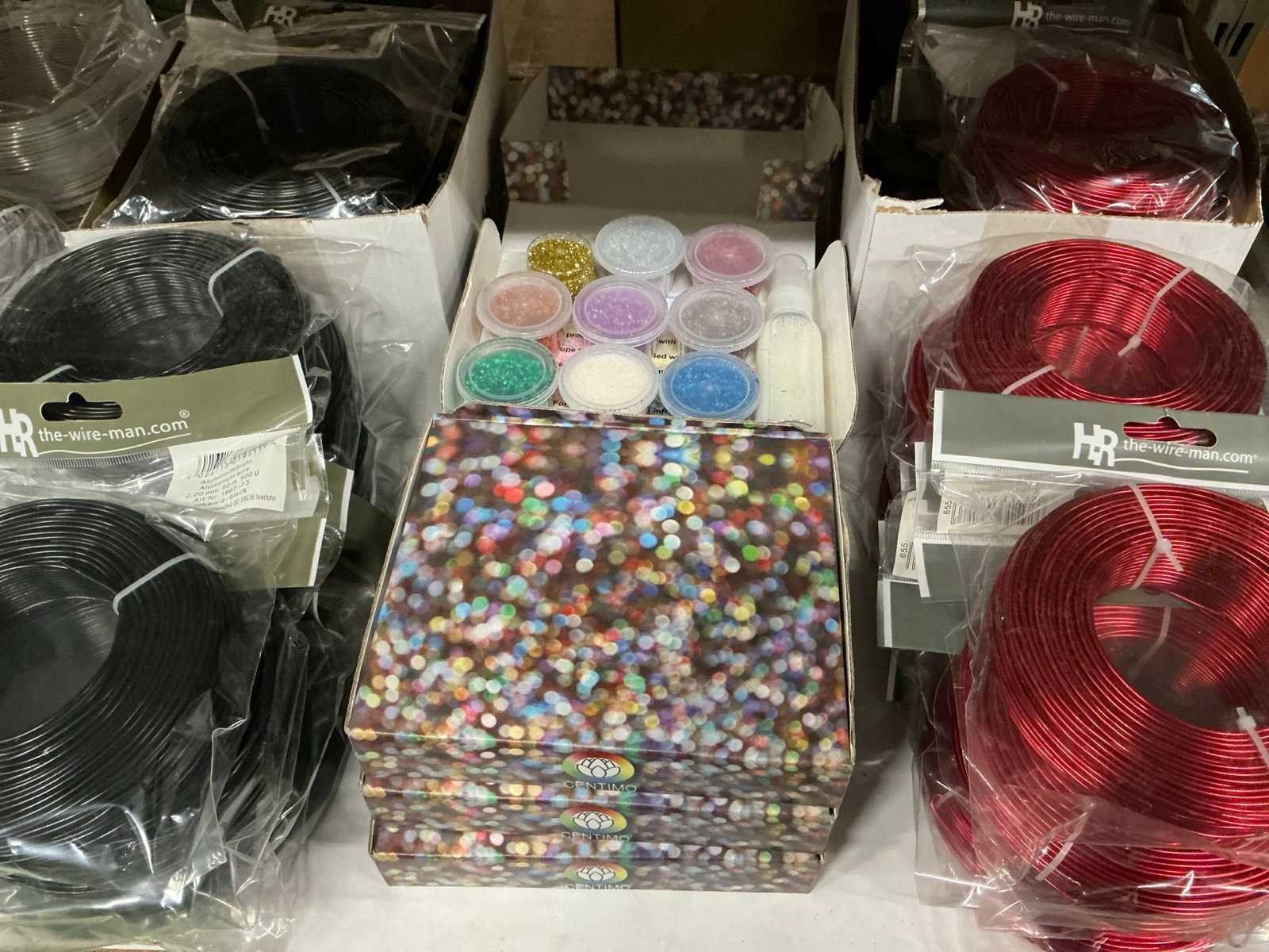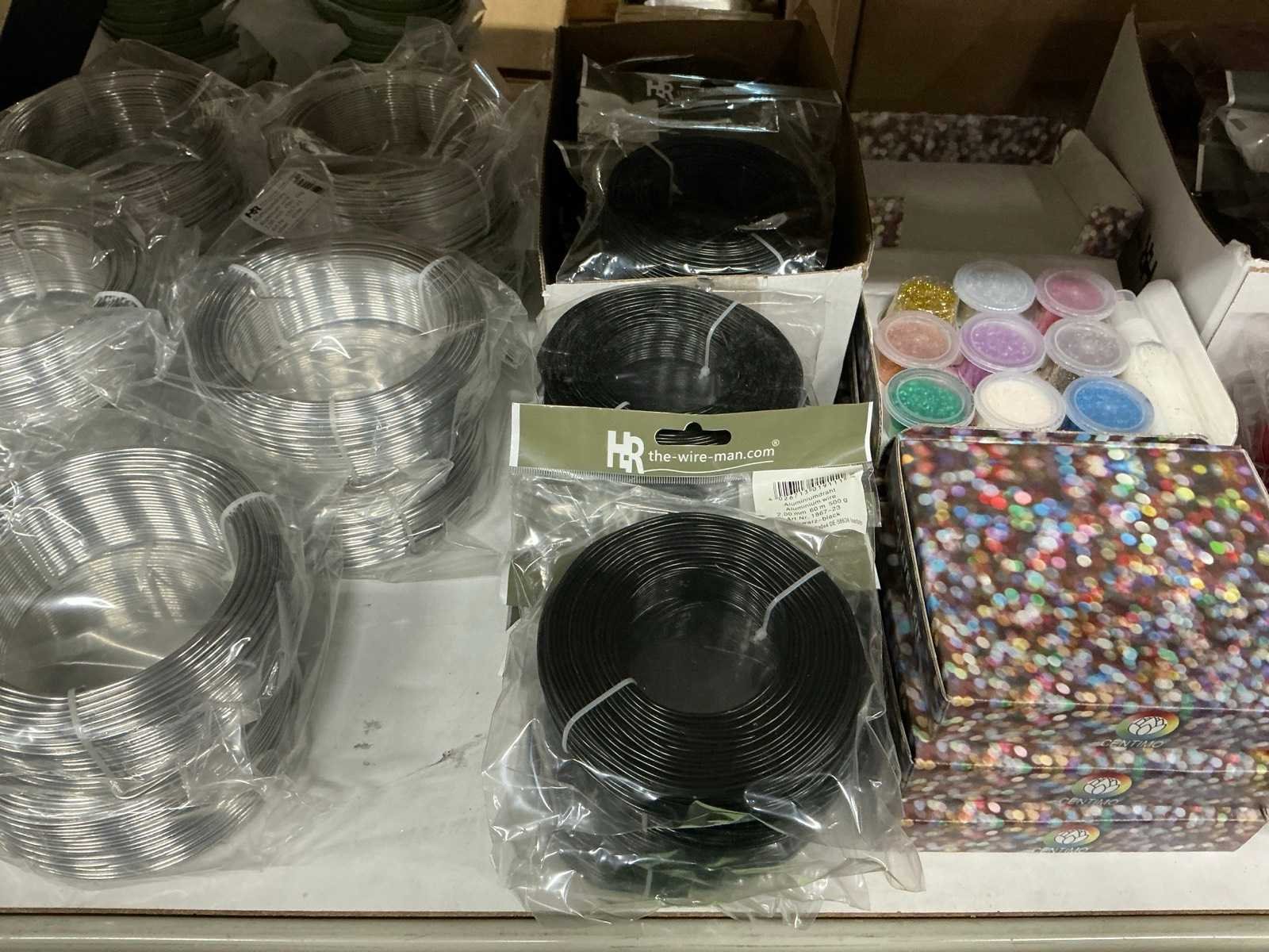 Wikkeldraad, aluminium wire & glitterkits. 134 verpakkingen.