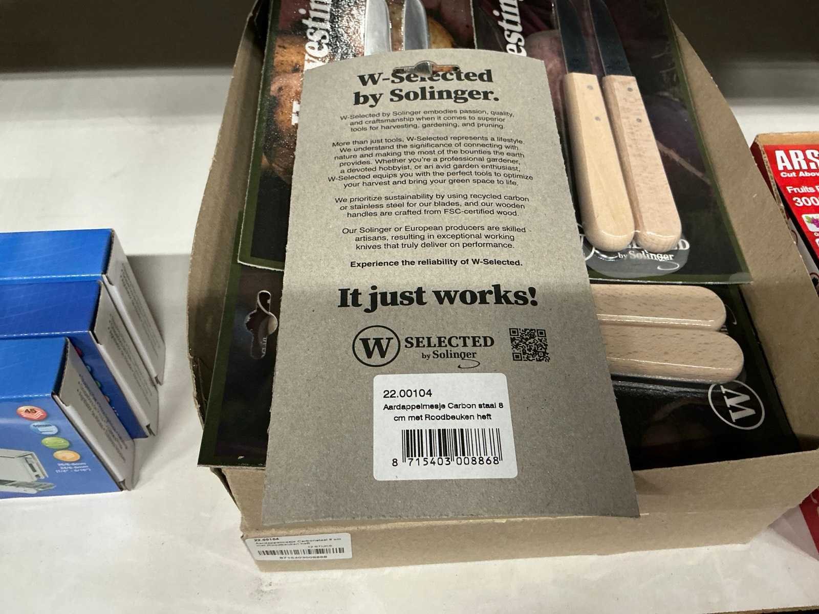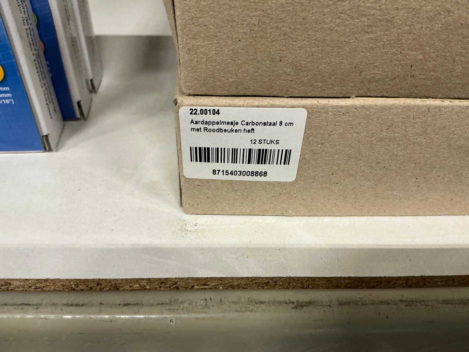 Partij aardappelmesjes carbon staal 8cm met roodbeuken heft (22x)