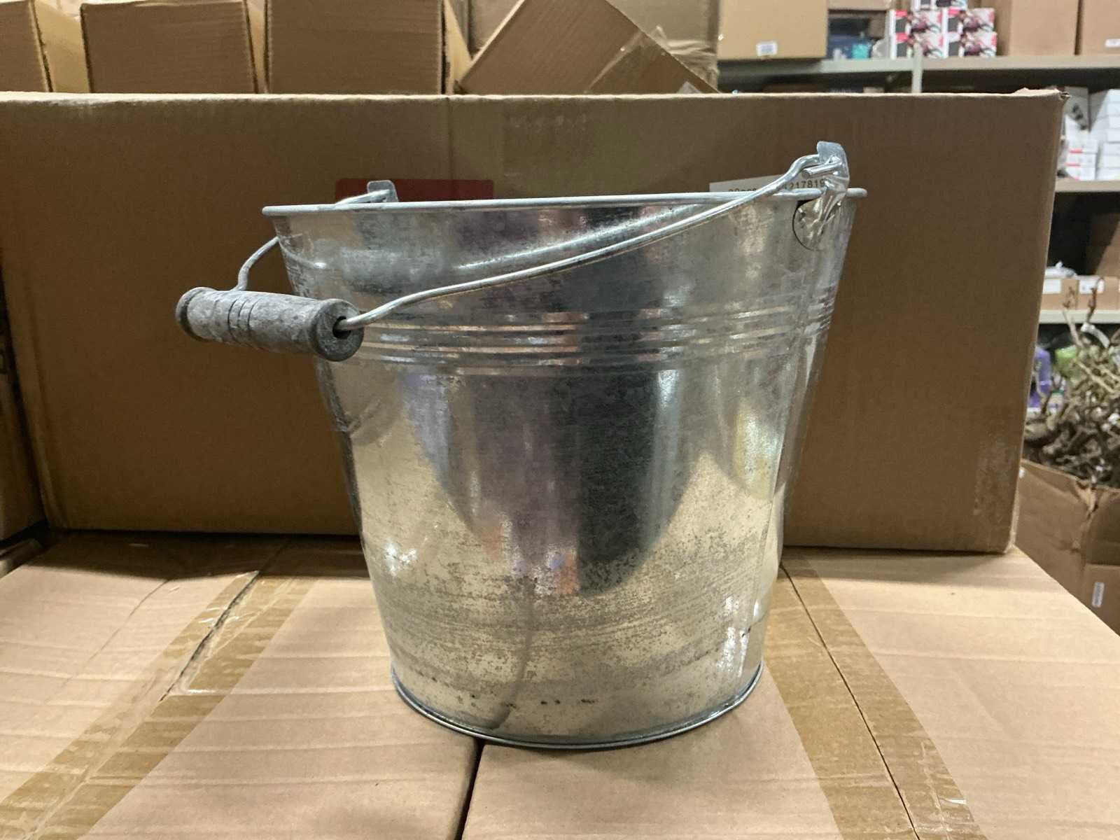 Partij zinc emmers met houten handvat ø25xh21cm (468x)