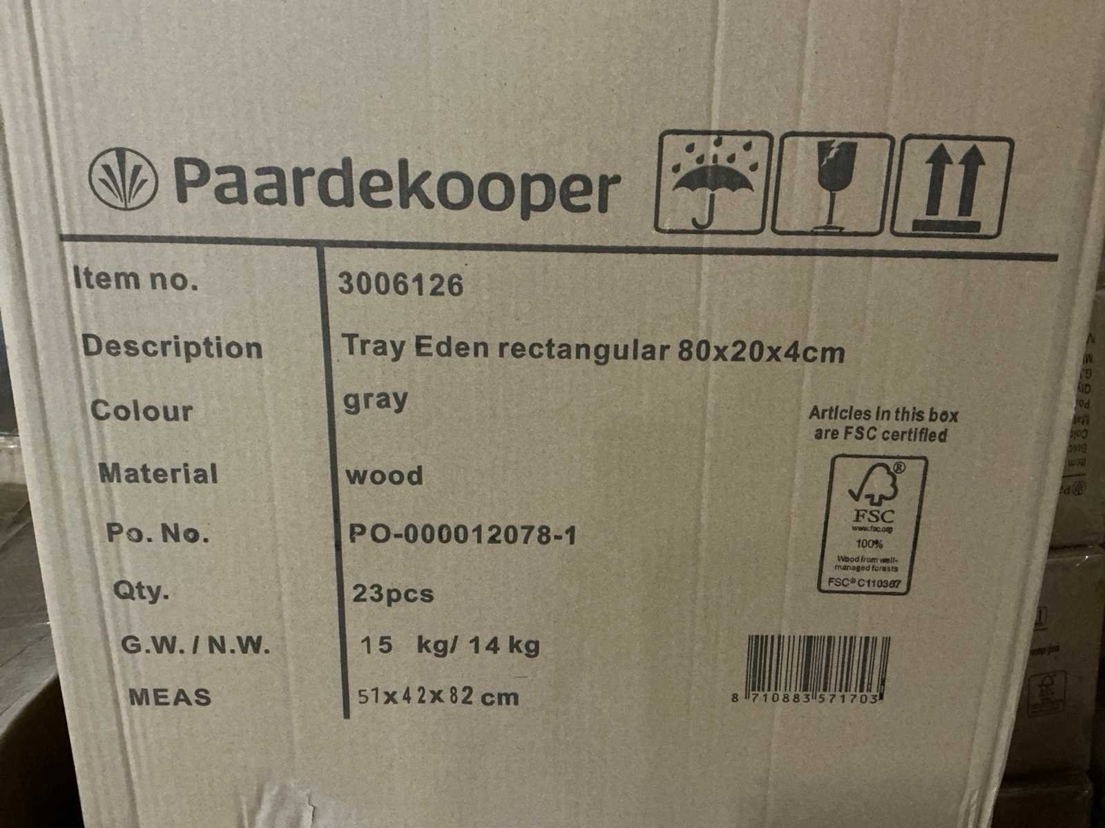 Partij tray eden rectangular 80x20x4cm gray wood (230x)