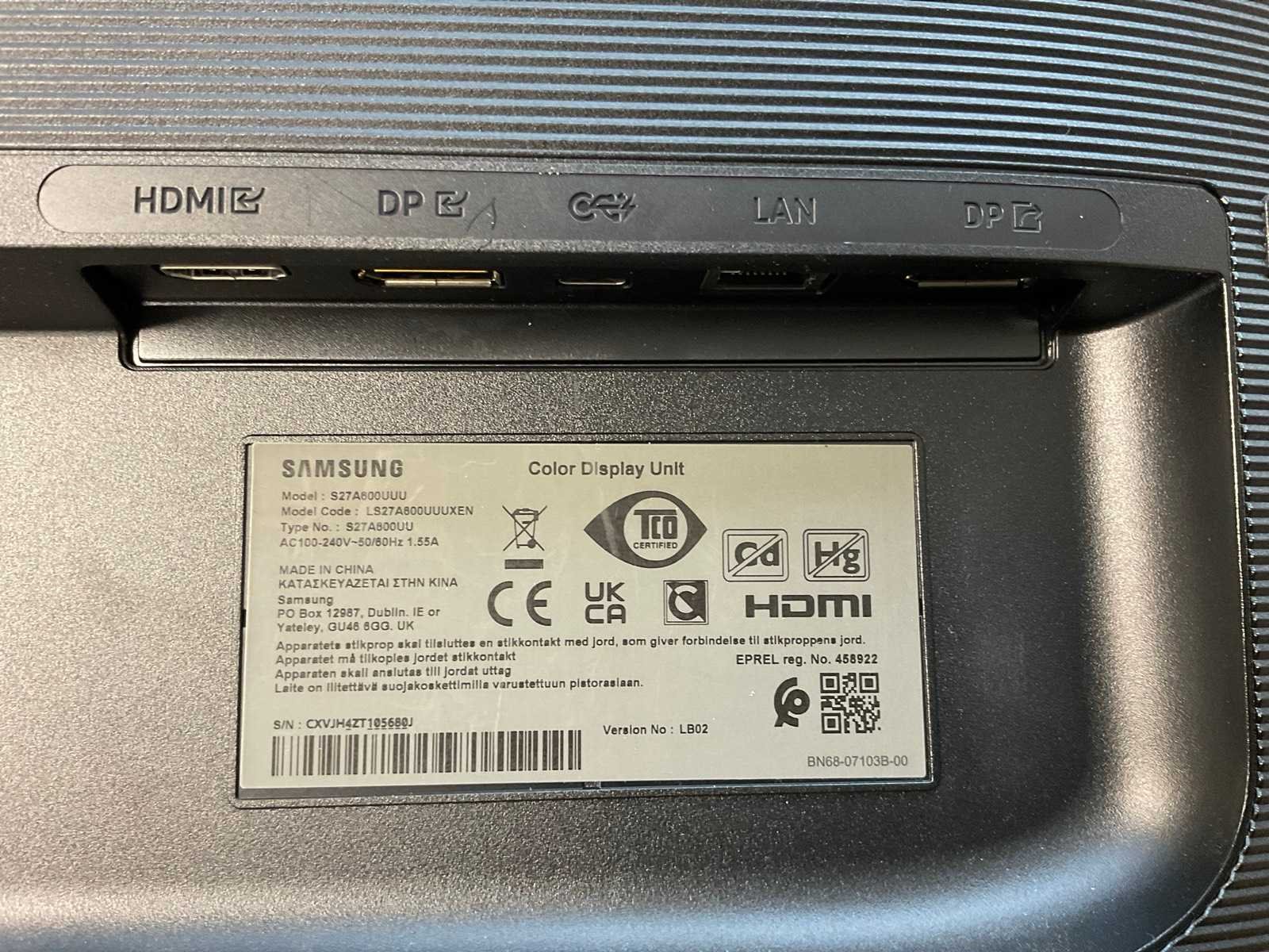(S27A600UUU) 27”, 2560x1440 (QHD) IPS Monitor; - Excl. Power and Connection Cable. Merk: Samsung Displaypoort: 2 HDMI: 1 USB: 4 Resolutie: 2560x1440 Beelddiagonaal: 27''