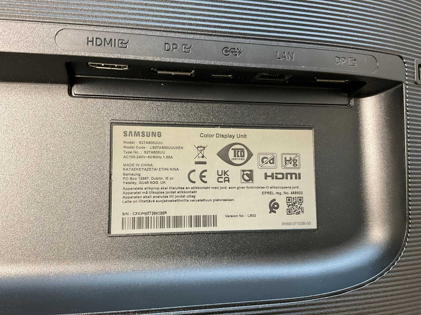 (S27A600UUU) 27”, 2560x1440 (QHD) IPS Monitor; - Excl. Power and Connection Cable. Merk: Samsung Displaypoort: 2 HDMI: 1 USB: 4 Resolutie: 2560x1440 Beelddiagonaal: 27''