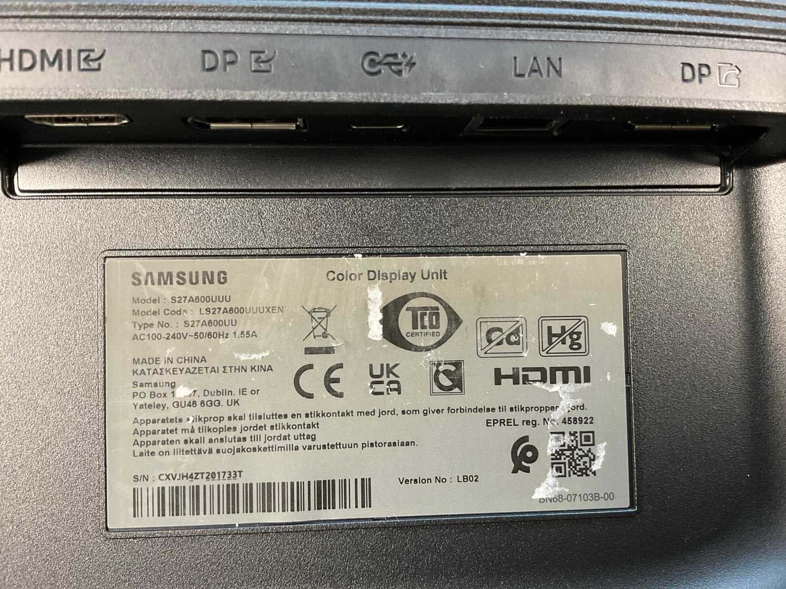 (S27A600UUU) 27”, 2560x1440 (QHD) IPS Monitor; - Excl. Power and Connection Cable. Merk: Samsung Displaypoort: 2 HDMI: 1 USB: 4 Resolutie: 2560x1440 Beelddiagonaal: 27''