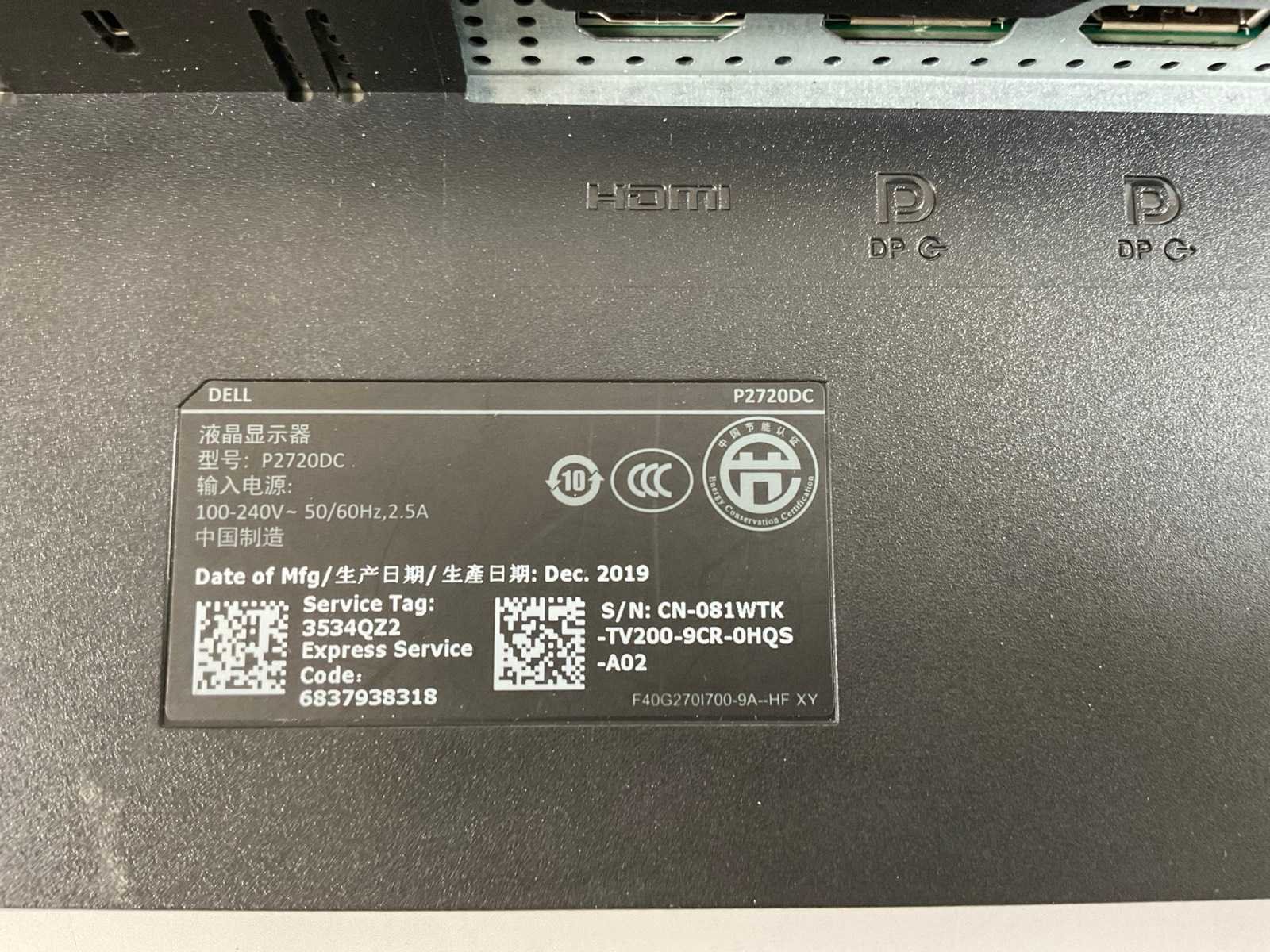 Dell (p2720dc) 27”, 2560x1440 (qhd) ips monitor