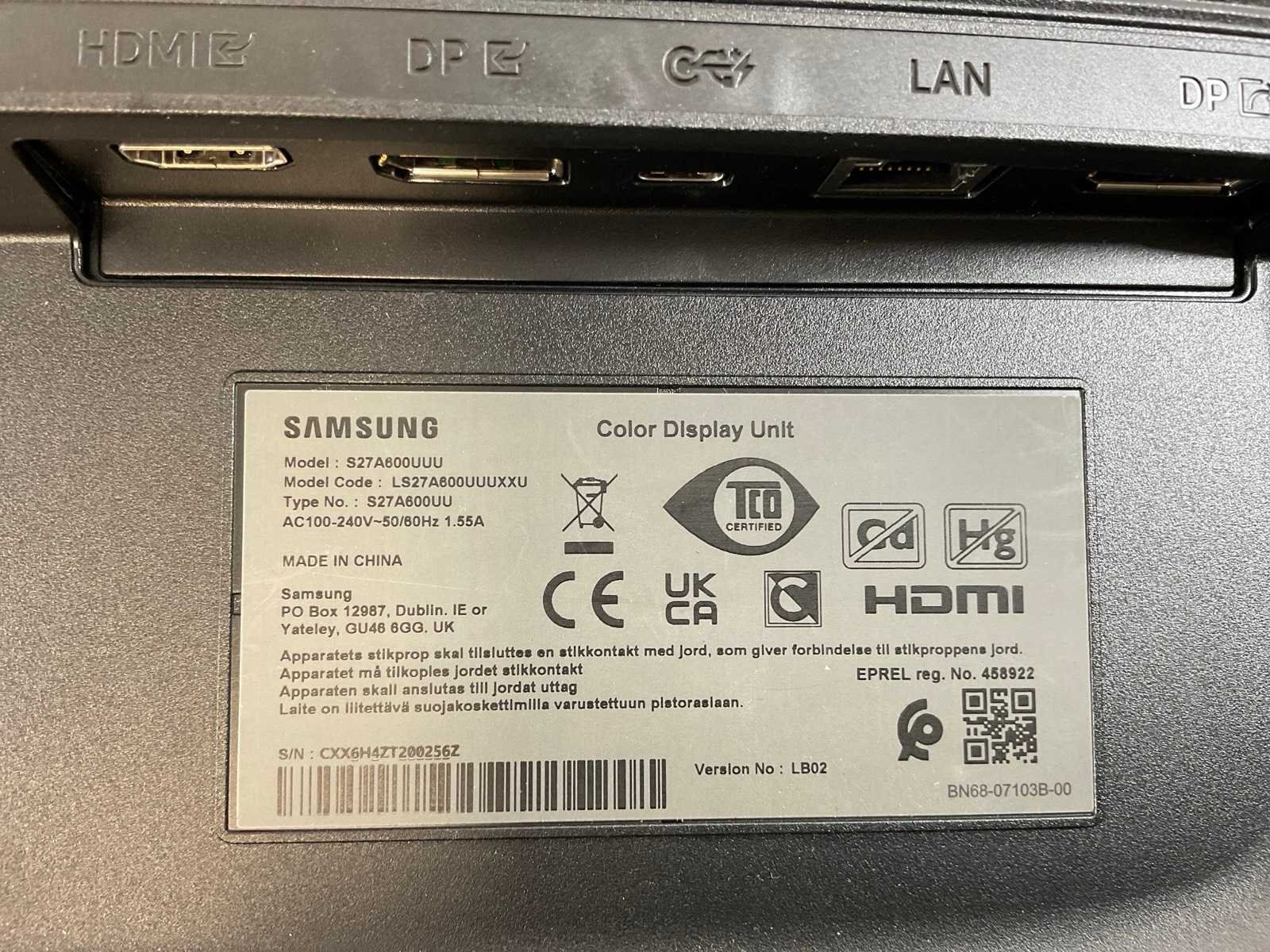 (S27A600UUU) 27”, 2560x1440 (QHD) IPS Monitor; - Excl. Power and Connection Cable. Merk: Samsung Displaypoort: 2 HDMI: 1 USB: 4 Resolutie: 2560x1440 Beelddiagonaal: 27''
