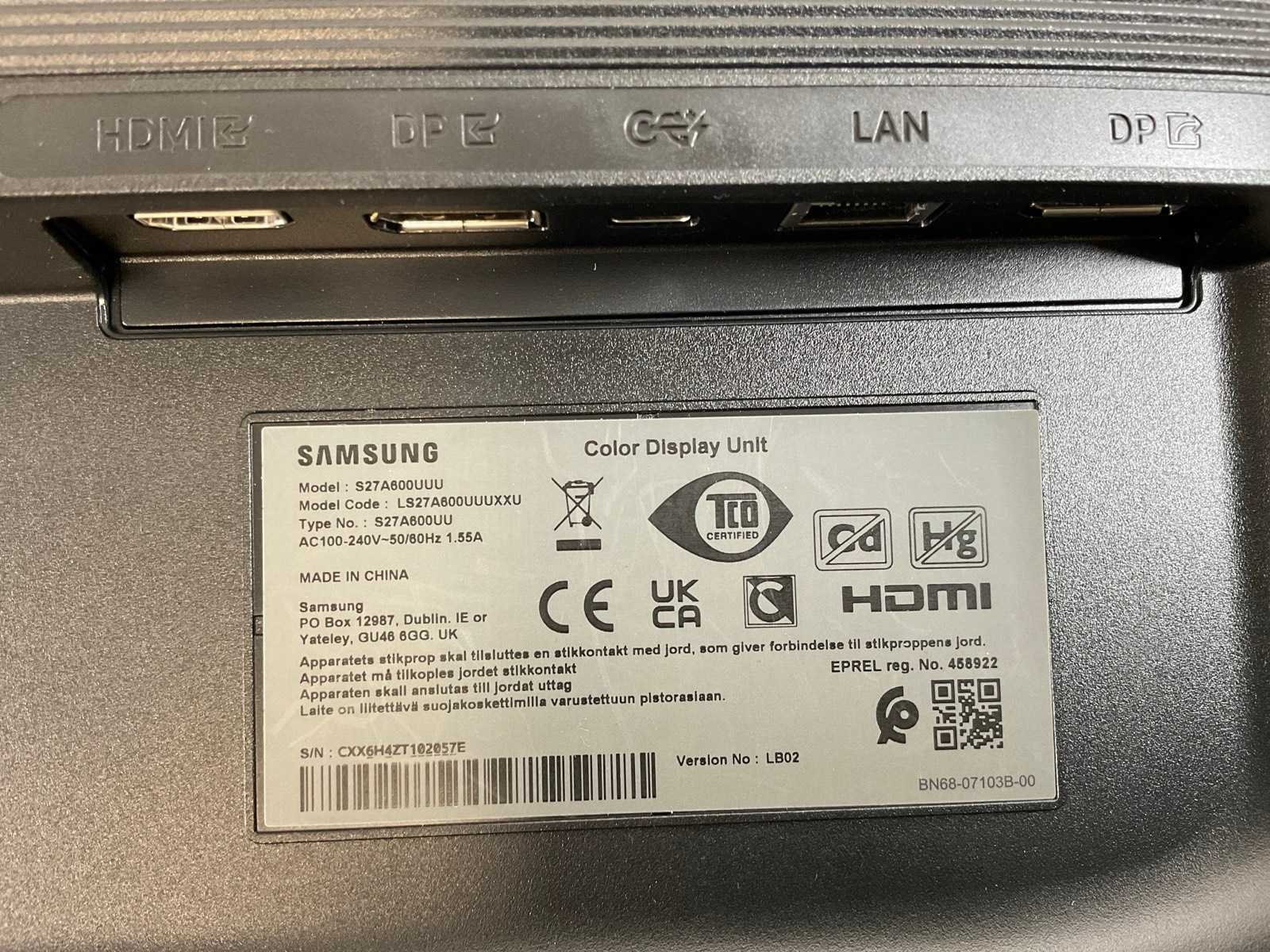 (S27A600UUU) 27”, 2560x1440 (QHD) IPS Monitor; - Excl. Power and Connection Cable. Merk: Samsung Displaypoort: 2 HDMI: 1 USB: 4 Resolutie: 2560x1440 Beelddiagonaal: 27''
