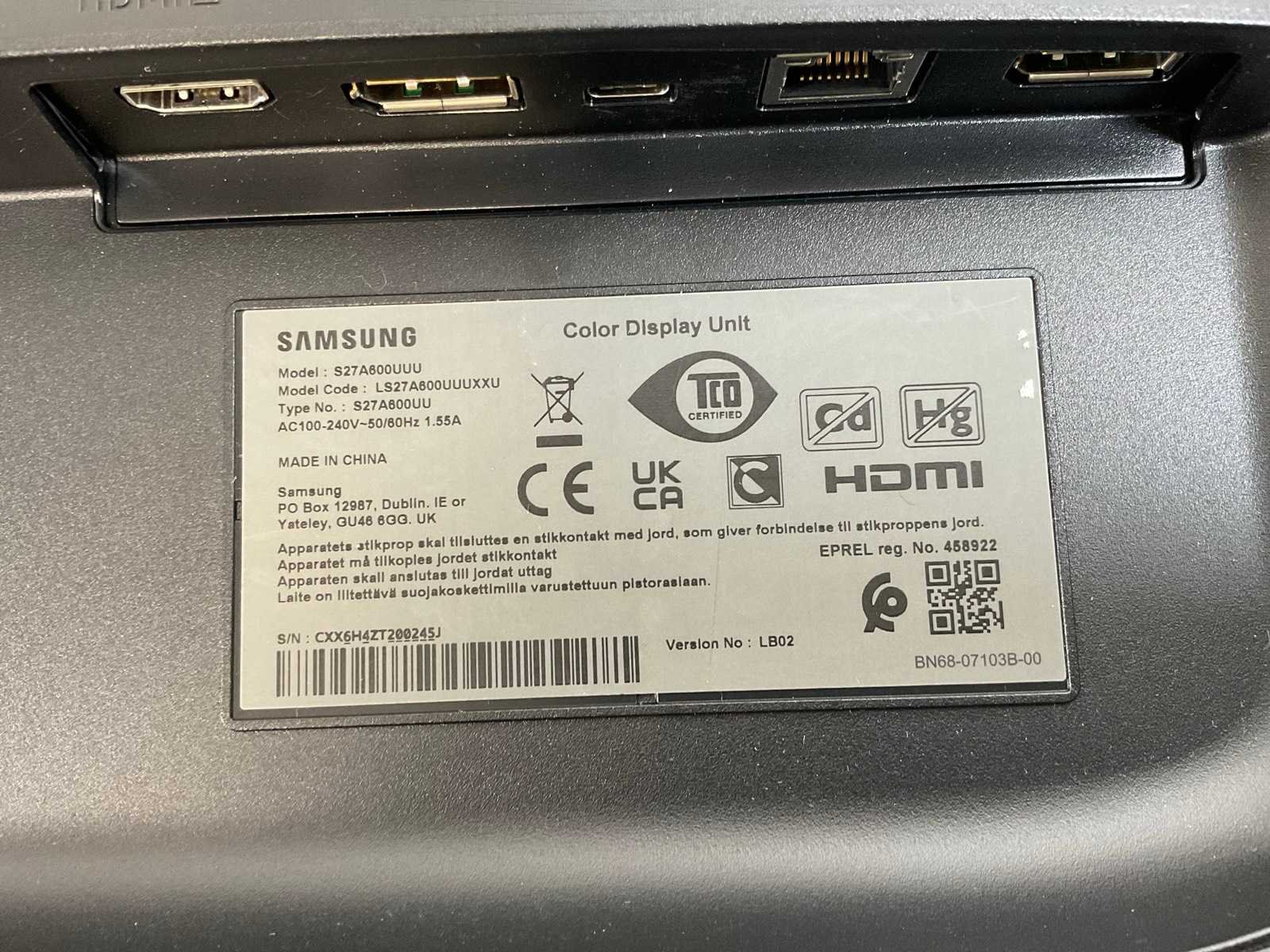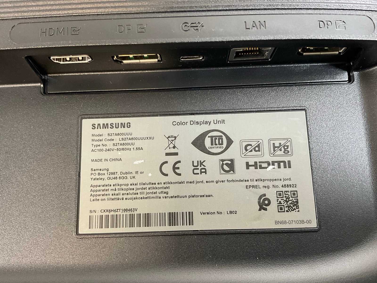 (S27A600UUU) 27”, 2560x1440 (QHD) IPS Monitors; - Excl. Power and Connection Cable. Merk: Samsung Displaypoort: 2 HDMI: 1 USB: 4 Resolutie: 2560x1440 Beelddiagonaal: 27''