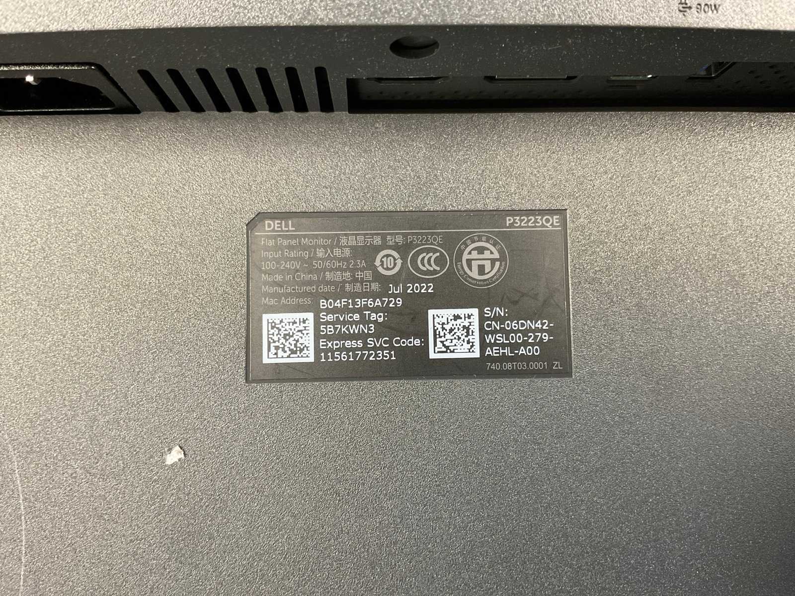 Dell (p3223qe) 32”, 3840x2160 (uhd) ips monitor