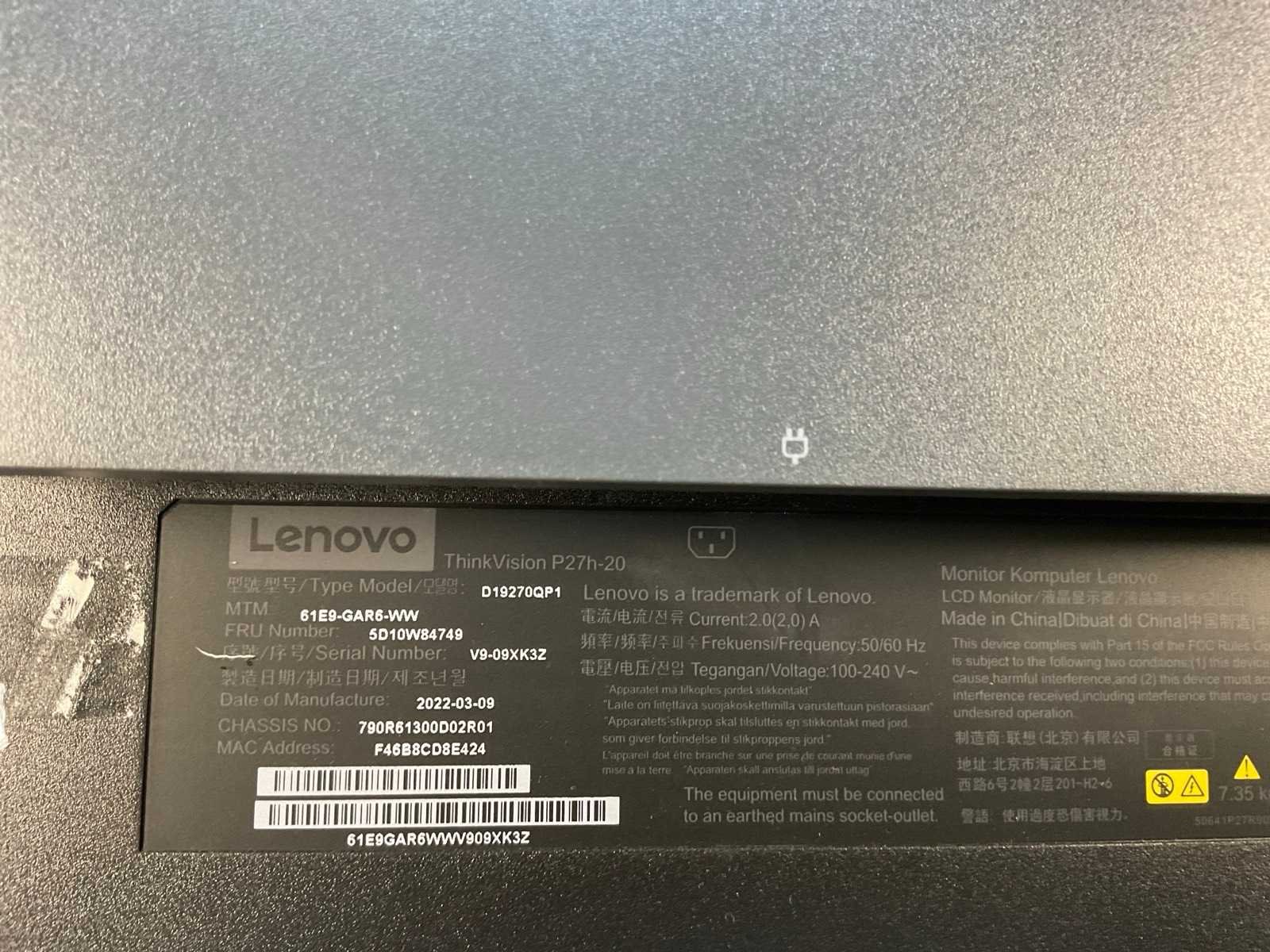 (P27h-20) 27”, 2560x1440 (QHD) IPS Monitors; - Excl. Power and Connection Cable. - This Lot is in two Pieces. Merk: Lenovo Displaypoort: 2 HDMI: 1 USB: 4 Resolutie: 2560x1440 Beelddiagonaal: 27''