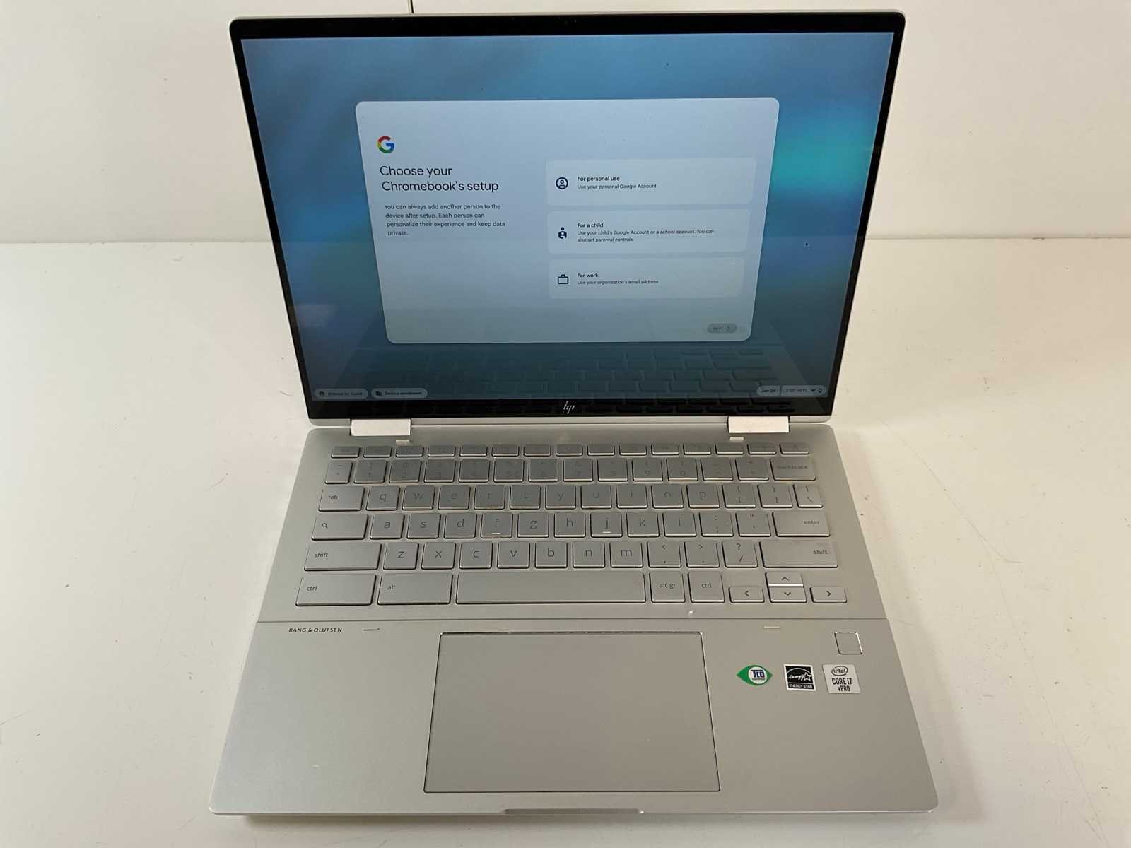 Elite C1030 13.5”, Core(TM) i7 10th Gen, 16 GB RAM, 128 GB SSD ChromeBooks; - 1x Case damaged, - Excl. chargers. Merk: HP Processor type: Intel(R) Core(TM) i7-10610U Processorsnelheid Ghz: 1.80 RAM Geheugen: 16GB RAM Geheugen Type: DDR3 Totale opslagcapaciteit: 128GB Type datadrager: SSD Zonder adapter: true Beeldscherm type: IPS Resolutie: 1920x1080 Beelddiagonaal: 13'' Bluetooth: true USB-Type: Type A,C USB poorten: 3