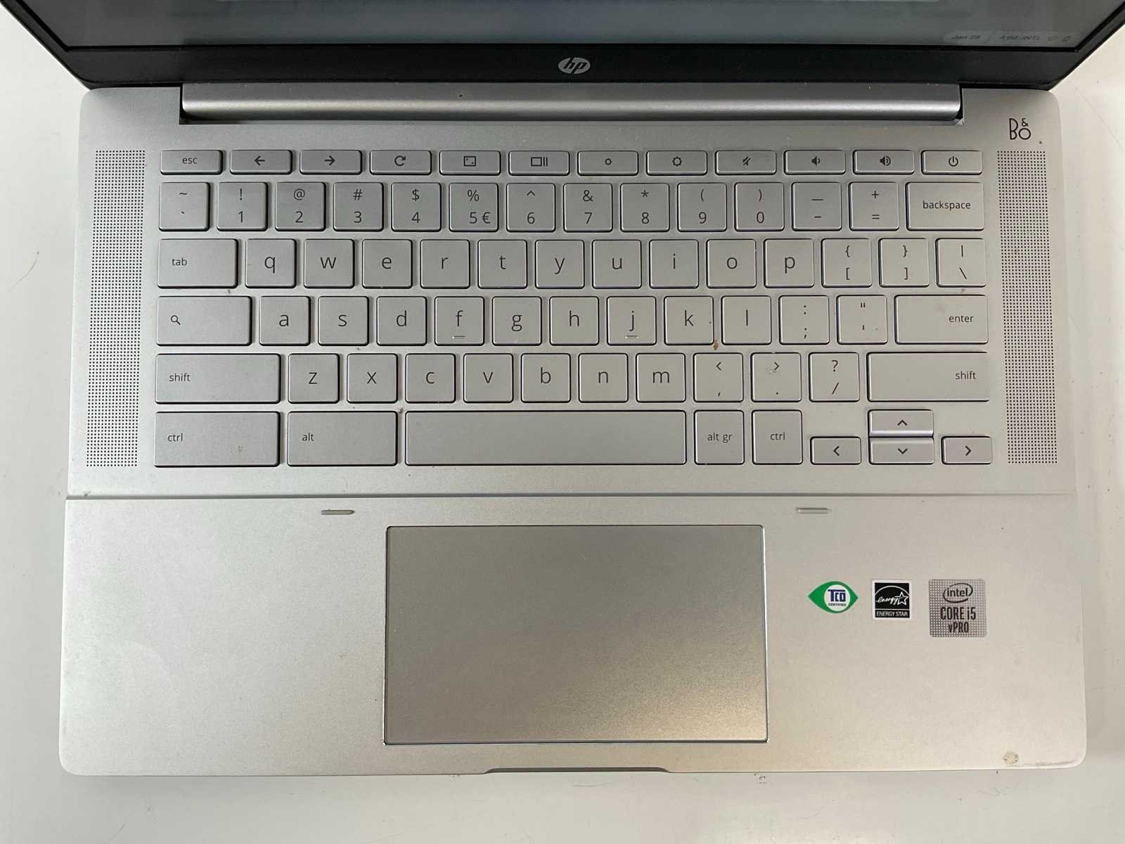 Pro C640 13.5”, Core(TM) i5 10th Gen, 8 GB RAM, 64 GB SSD ChromeBooks; - 2x Case damaged, - Excl. chargers. Merk: HP Processor type: Intel(R) Core(TM) i5-10310U Processorsnelheid Ghz: 1.70 RAM Geheugen: 8GB RAM Geheugen Type: DDR3 Totale opslagcapaciteit: 64GB Type datadrager: SSD Zonder adapter: true Beeldscherm type: IPS Resolutie: 1920x1080 Beelddiagonaal: 13'' Bluetooth: true USB-Type: Type A,C USB poorten: 3 Webcam: true HDMI: 1