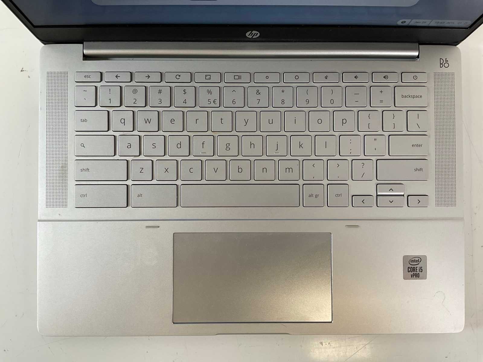 Pro C640 13.5”, Core(TM) i5 10th Gen, 8 GB RAM, 64 GB SSD ChromeBooks; - 2x Light spots on screen, - Excl. chargers. Merk: HP Processor type: Intel(R) Core(TM) i5-10310U Processorsnelheid Ghz: 1.70 RAM Geheugen: 8GB RAM Geheugen Type: DDR3 Totale opslagcapaciteit: 64GB Type datadrager: SSD Zonder adapter: true Beeldscherm type: IPS Resolutie: 1920x1080 Beelddiagonaal: 13'' Bluetooth: true USB-Type: Type A,C USB poorten: 3 Webcam: true HDMI: 1