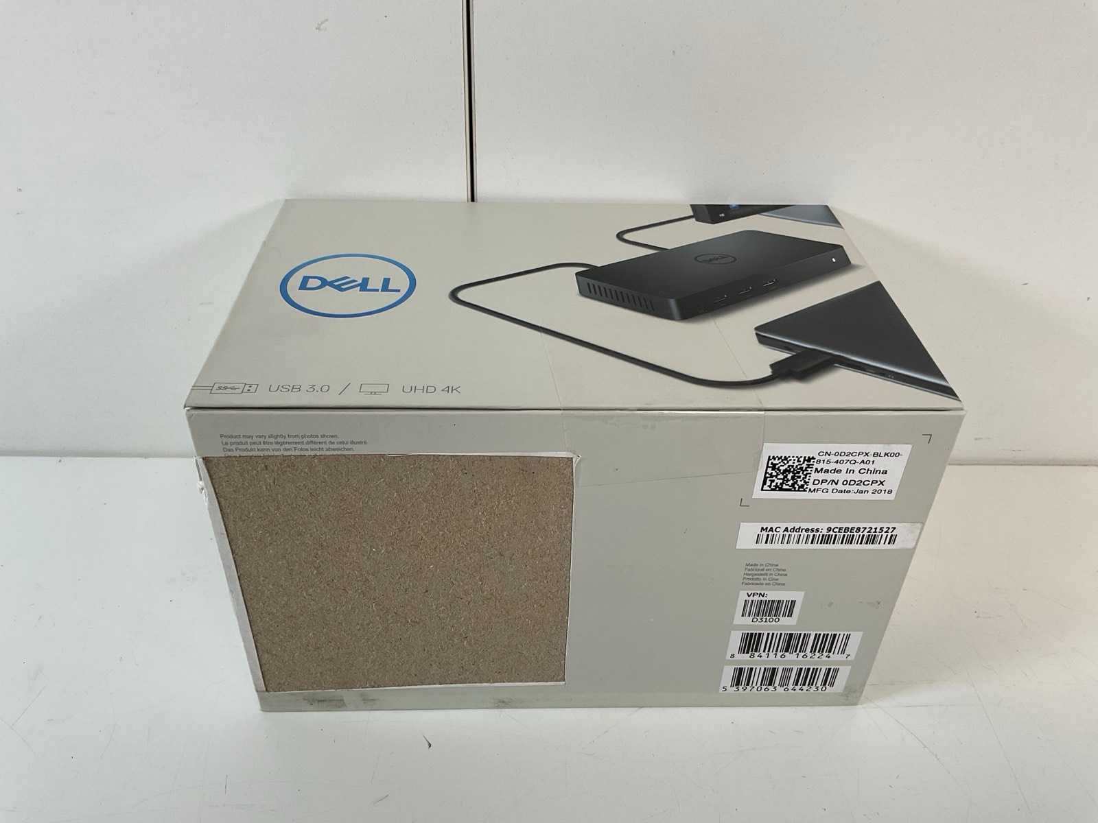 (D3100) USB-C 3.0 Universal Docking Stations (New); - New in sealed boxes, - Boxes can be lightly scratched/cut/damaged. Merk: Dell