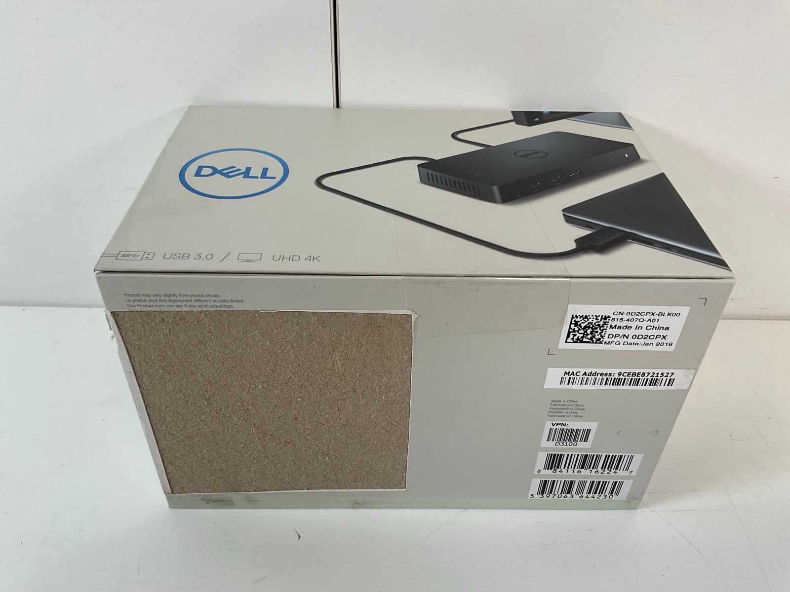 (D3100) USB-C 3.0 Universal Docking Stations (New); - New in sealed boxes, - Boxes can be lightly scratched/cut/damaged. Merk: Dell