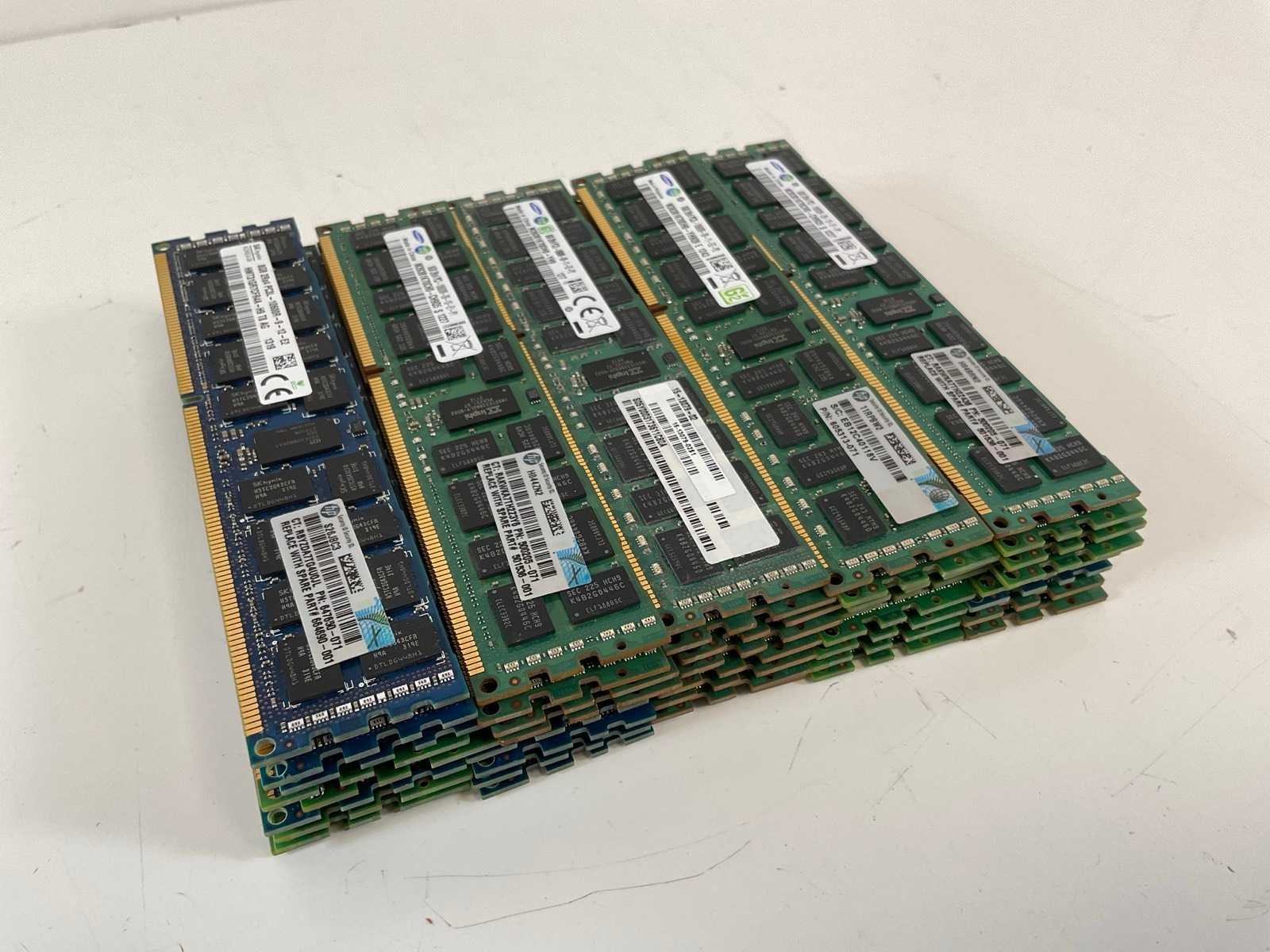 Mix Model 8 GB RAMs - Check Description; - 10x SkHynix (HMT31GR7CFR4A-H9) 8 GB 2Rx4 PC3L-10600R RAMs, - 12x Samsung (M393B1K70CH0-CH9Q5) 8 GB 2Rx4 PC3-10600R RAMs, - 17x Samsung (M393B1K70DH0-YH9) 8 GB 2Rx4 PC3L-10600R RAMs, - 3x Samsung (M393B1K70DH0-YH9Q9) 8 GB 2Rx4 PC3L-10600R RAMs, - Pulled from working assets. Merk: SkHynix/Samsung