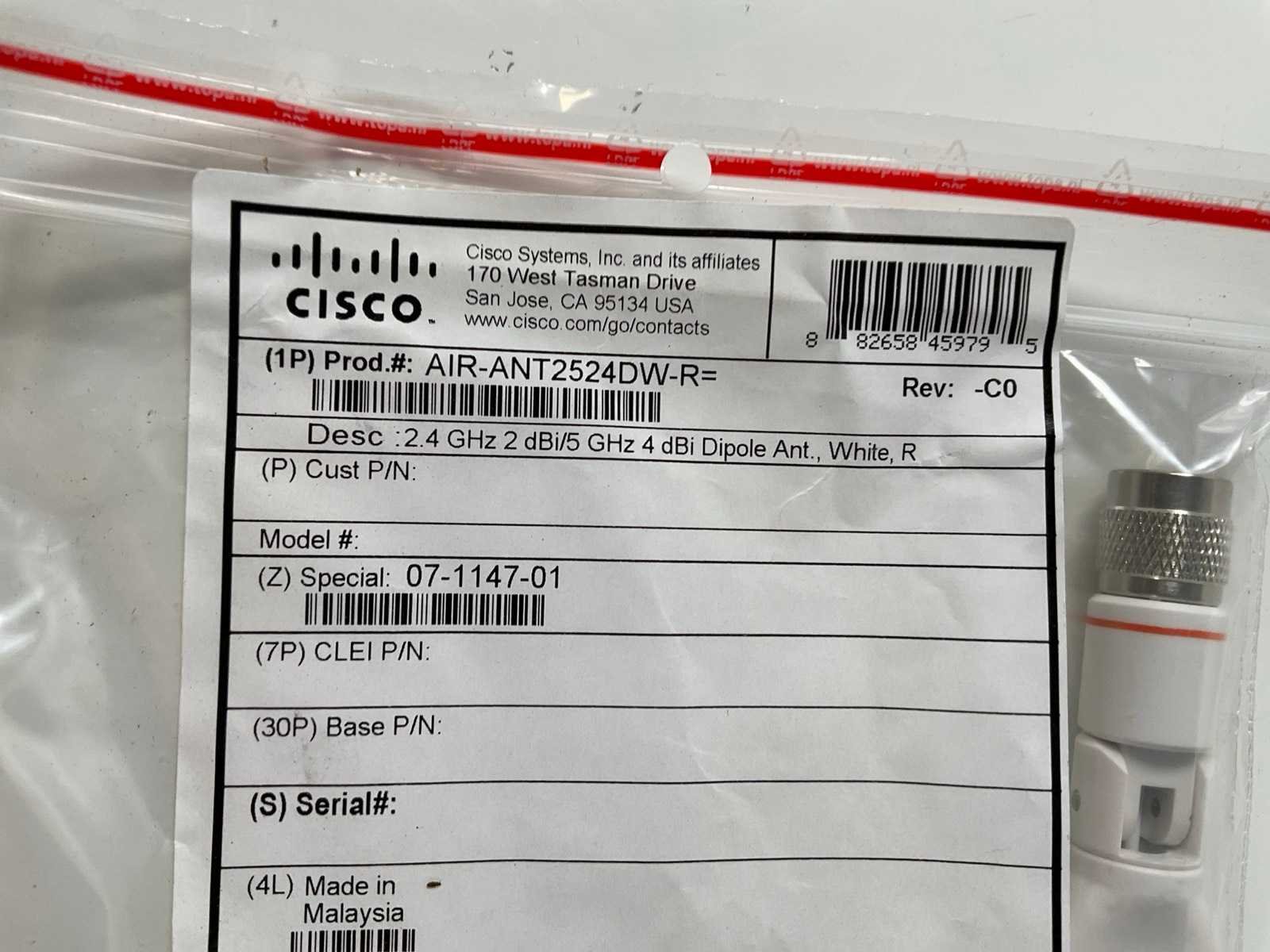 (AP2802E-E-K9) Air Series 4x4 MU-MIMO Access Points (New); - New in sealed boxes, - Including 44x Cisco (AIR-ANT2524DW-R) External Antennas, - Excl. Cisco license. Merk: Cisco