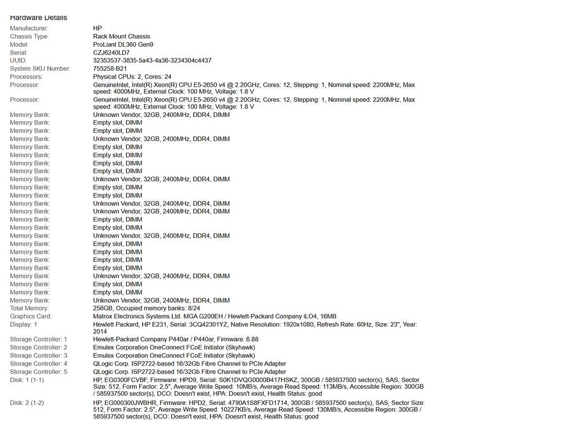 (ProLiant DL360 Gen9) - 2x Xeon(R) E5-2650 v4, 256 GB RAM (8x32GB), 600 GB SAS Rack Mount Chassis; - Pulled, - 2x 500W Power Supply Unit, - 1x HP (EG0300FCVBF) 300 GB SAS, - 1x HP (EG000300JWBHR) 300 GB SAS, - Excl. power and connection cables. Merk: HP