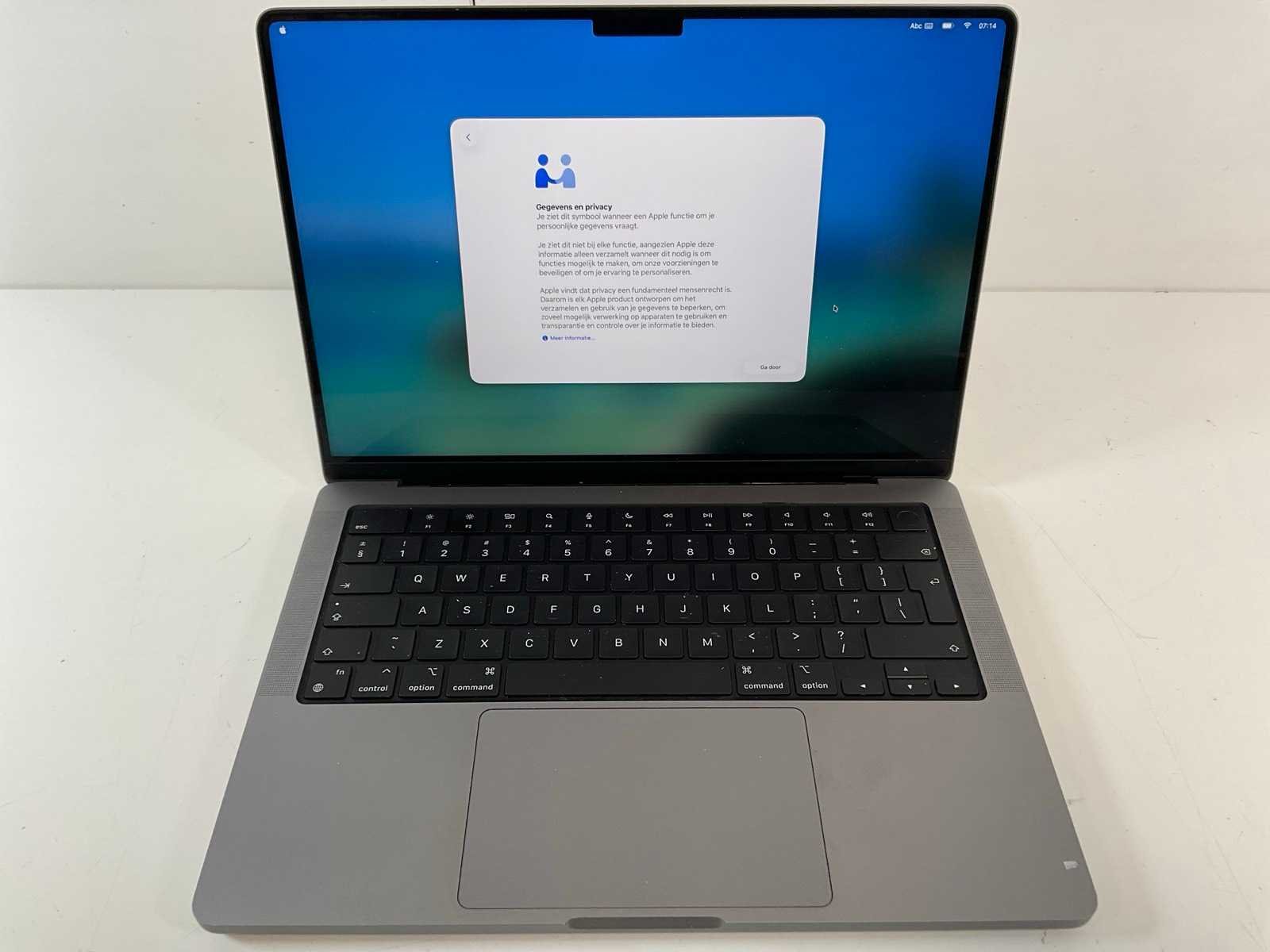 MacBook Pro 14”, Apple M1 Pro, 16 GB RAM, 512 GB SSD Laptop; - Case damaged, - Excl. charger. Merk: Apple Processor type: M1 Pro Processorsnelheid Ghz: 3.20 RAM Geheugen: 16GB RAM Geheugen Type: DDR5 Totale opslagcapaciteit: 512GB Type videokaart: M1 Pro Zonder adapter: true Beeldscherm type: IPS Resolutie: 3024x1964 Beelddiagonaal: 14'' Wifi: true Bluetooth: true USB-Type: Type C USB poorten: 3 Webcam: true HDMI: 1