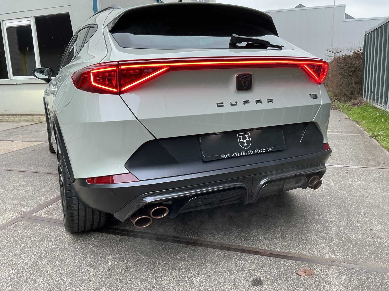 Duits kenteken Registratie papieren compleet Limited edition taiga grey editie nummer 726 van 999 wereldwijd. Full option Opties & uitrusting 2.5 TFSI vijfcilinder motor (RS3-motor) DSG automaat 4Drive vierwielaandrijving Special Edition Carbon Carbon frontsplitter Carbon achterdiffuser Quad uitlaatsysteem 20 inch CUPRA VZ5 lichtmetalen velgen Matrix LED koplampen LED achterlichten met doorlopende lichtbalk CUPRA sportstoelen bekleed met Alcantara Elektrisch verstelbare sportstoelen Digitaal instrumentenpaneel (Virtual Cockpit) Groot touchscreen infotainmentsysteem Apple CarPlay / Android Auto Beats audiosysteem CUPRA sportstuur met startknop en rijmodusselectie Ambianceverlichting Automatische climate control Keyless entry & start Parkeersensoren voor en achter Achteruitrijcamera Adaptieve rijmodi Aluminium sportpedalen Zwarte dakrails Sportieve dakspoiler Merk: CUPRA Model: Formentor VZ5 Type: 2.5 TFSI Carbon editie Bouwjaar: 2023 Afgelezen kilometerstand: 20409km Cilinderinhoud: 2480cc Vermogen (kW): 287kW Brandstof: Benzine Vermogen (pk): 390hp Aantal zitplaatsen: 5 Kleur: Taiga Grey Transmissie: DSG-7 Aantal deuren: 5 Aantal sleutels: 2 Velgmaat: 20 Inch Aantal cilinders: 5 Carrosserie: SUV, Crossover Nationaliteit documenten: Duitsland Gelijkvormigheidsattest aanwezig: true Airconditioning: true LED-koplampen: true Vierwielaandrijving 4x4: true