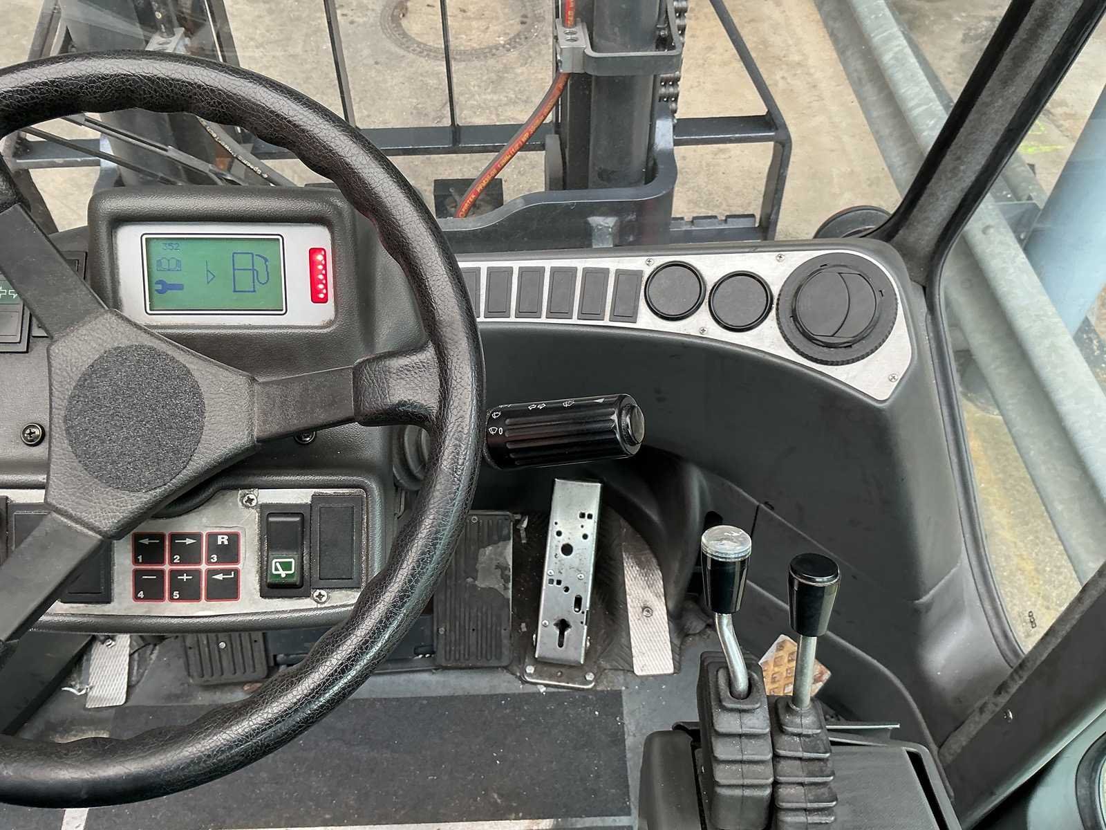 Merk: Kalmar Type: DCF-50-6-H Bouwjaar: 2016 Mast: Duplex Afgelezen urenstand: 7095 Duplex mast: true Eigen gewicht: 8640kg Hefvermogen: 5000kg Lepellengte: 1000mm Hefhoogte: 3750mm Minimale doorrijhoogte: 2780mm Diesel: true