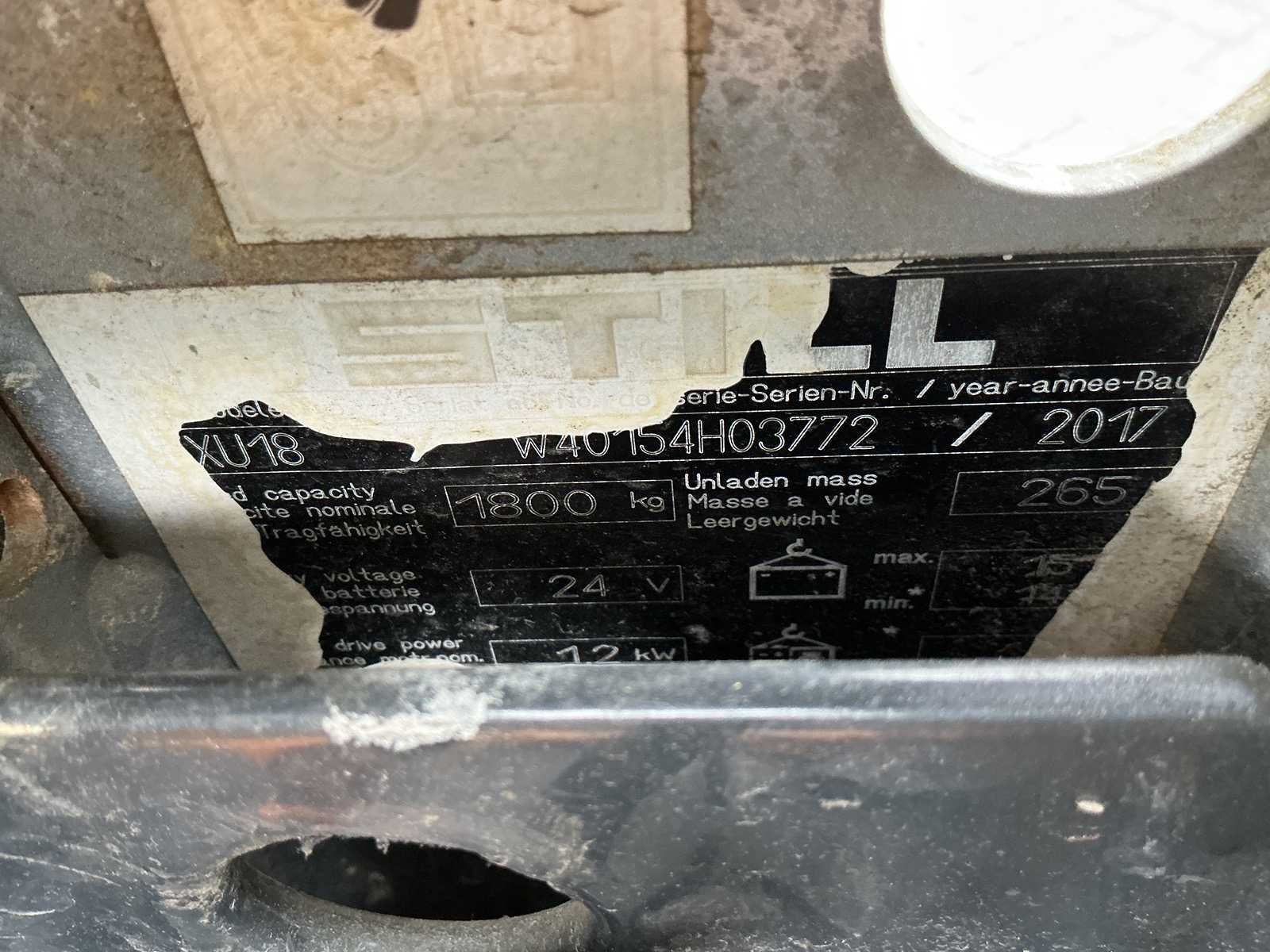 Merk: STILL Type: EXU18 Bouwjaar: 2017 Serienummer: W40154H03772 Hefvermogen: 1800kg Lepellengte: 1150mm Afgelezen urenstand: 1663