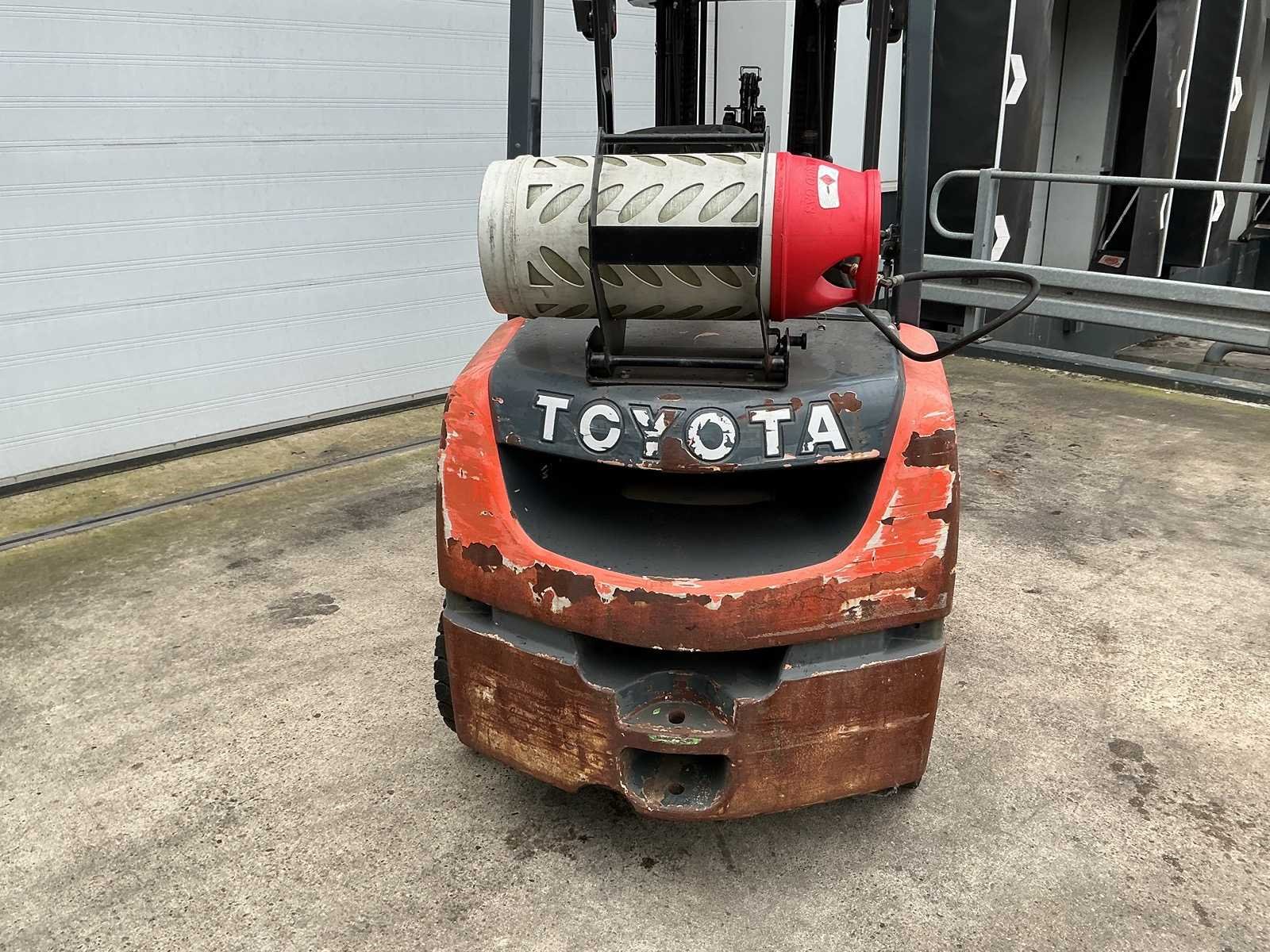 Gasfles niet inbegrepen Merk: Toyota Type: 02-8-FGJF-35 Bouwjaar: 2016 Afgelezen urenstand: 14239 Side-shift: true Eigen gewicht: 5320kg Hefvermogen: 3500kg Lepellengte: 1200mm Hefhoogte: 5500mm Minimale doorrijhoogte: 2850mm LPG: true