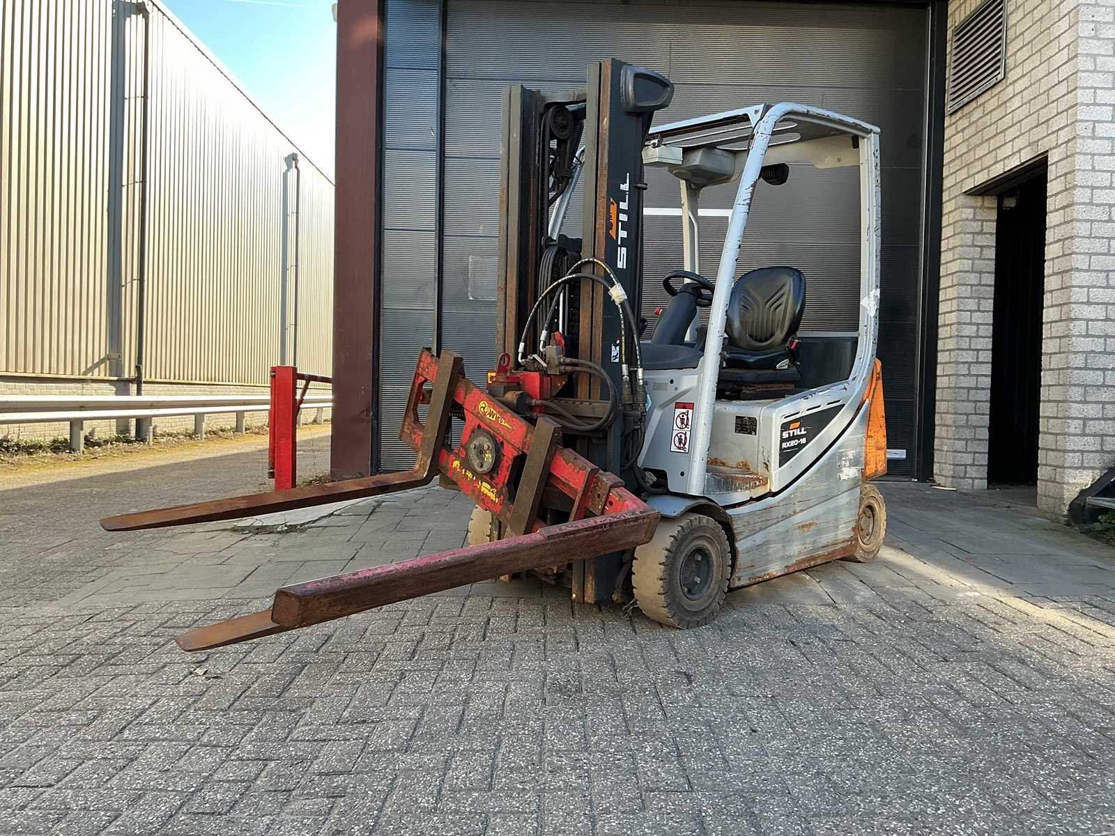 Rotating fork Merk: STILL Type: RX20-16 Bouwjaar: 2020 Serienummer: 516226X00503 Mast: Triplex Afgelezen urenstand: 16640 Free-lift: true Side-shift: false Roterend vorkenbord: true Triple mast: true Hefvermogen: 1600kg Lepellengte: 1200mm Hefhoogte: 4480mm Minimale doorrijhoogte: 2060mm