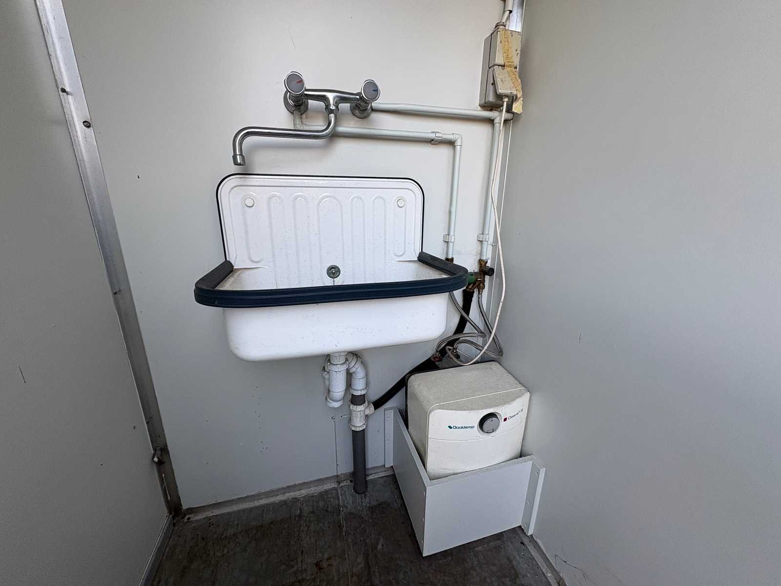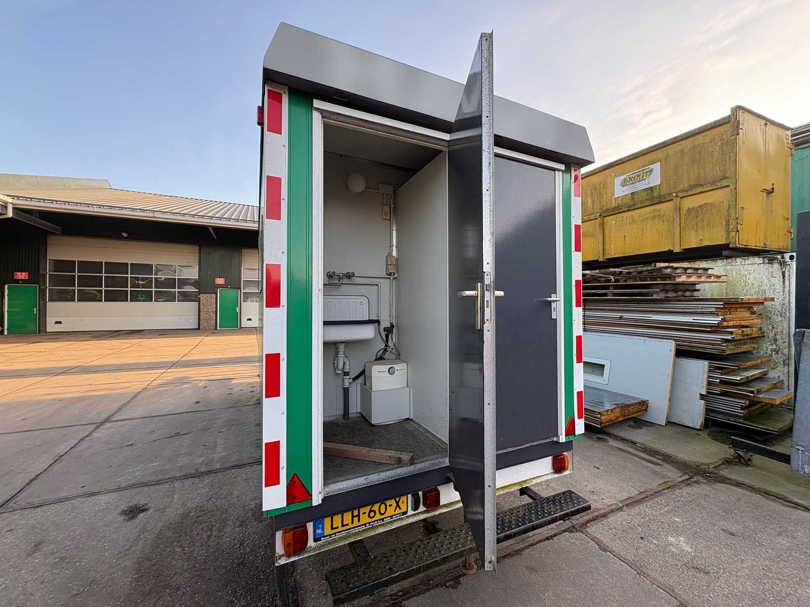 Verrijdbaar op tandemasser; kantinegedeelte; toilet; opbregruimte; wastafel; elektrische boiler; beschadiging aan plafond (gat in het dak); elektra en watervoorziening ongetest; kenteken LLH-60-X Totale afmeting L: 5000mm Totale afmeting Breedte: 2110mm Totale afmeting Hoogte: 2900mm