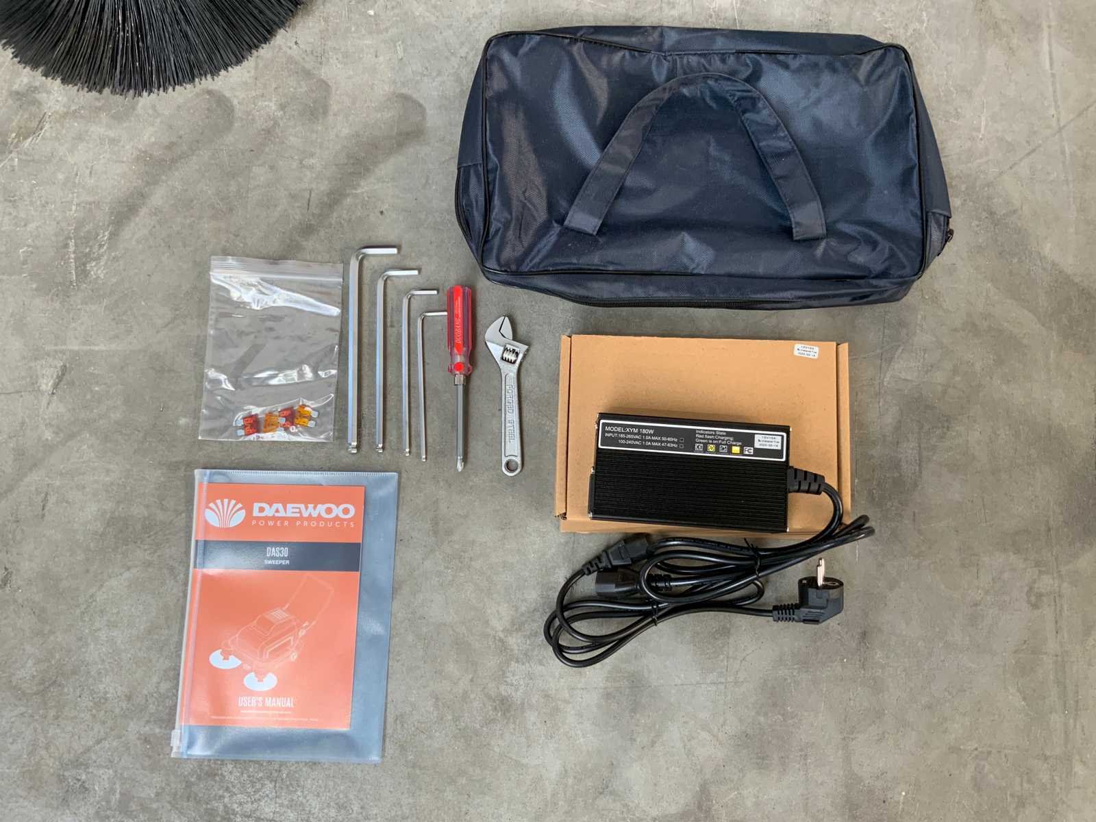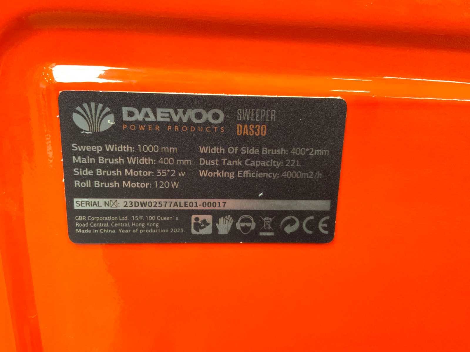Transport krat afmeting; 1060x960x770mm; 230v; 120w borstelmotor; hoofdborstel 400mm; side brusch 400x2mm; working efficiency 4000m2/h; PO23-5673 Merk: Daewoo Type: DAS30 Bouwjaar: 2025 Werkbreedte: 1000mm Totale afmeting L: 1400mm Totale afmeting Breedte: 1000mm Totale afmeting Hoogte: 880mm