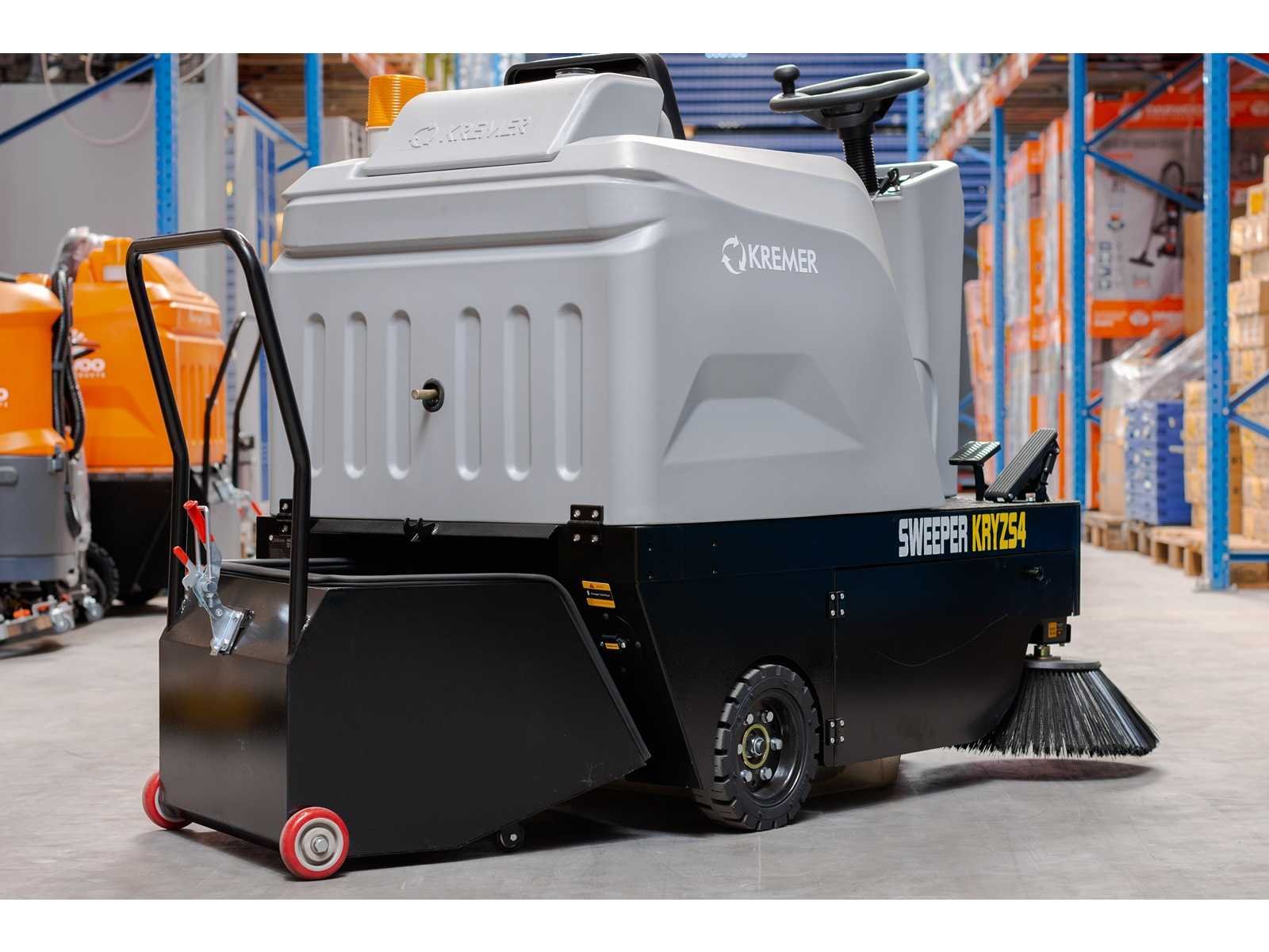 Sweeping width 1250 mm; Side brush width 2*400 mm; Walking motor 700 W; Battery capacity 48 v/ 65 ah * 4 pcs; Total weight 396 kgs; Width of main brush 500 mm; Work efficiency 6380 m2/h; Garbage capacity 80L; Roller brush motor 700W; Walking speed 0-10 Km/h; 80 liter vuilcontainer inhoud; 4782 Merk: Kremer Type: KRYZS4 Bouwjaar: 2025 Elektrisch aangedreven: true Met oplader: true Eigen gewicht: 396kg Werkbreedte: 1250mm Totale afmeting L: 1600mm Totale afmeting Breedte: 1160mm Totale afmeting Hoogte: 1300mm