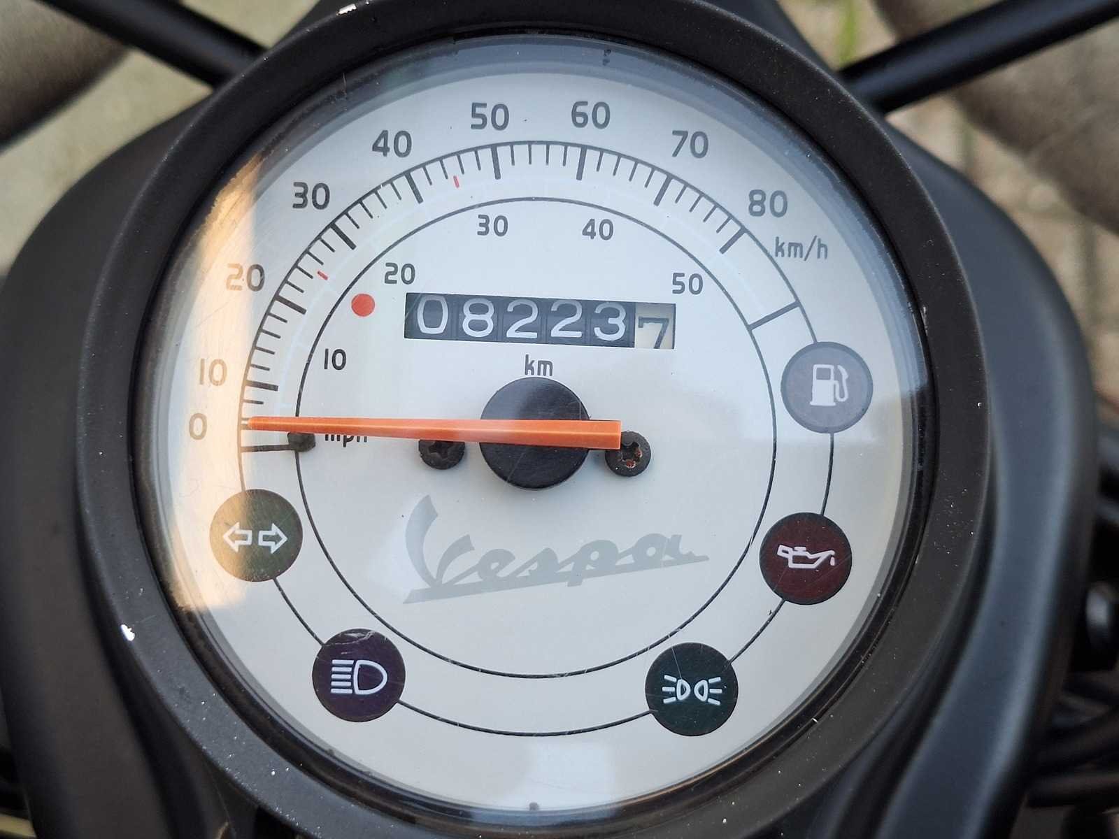 1 sleutel aanwezig voor scooter. Accessoire: hoog windscherm. Merk: Piaggio Vespa Model: 25 km snorscooter 2takt Type: LXV Snelheid: 25km/h Kenteken: D772KV Datum eerste toelating: 28-03-2011 Bouwjaar: 2011 Kleur: mat zwart Afgelezen kilometerstand: 8223km