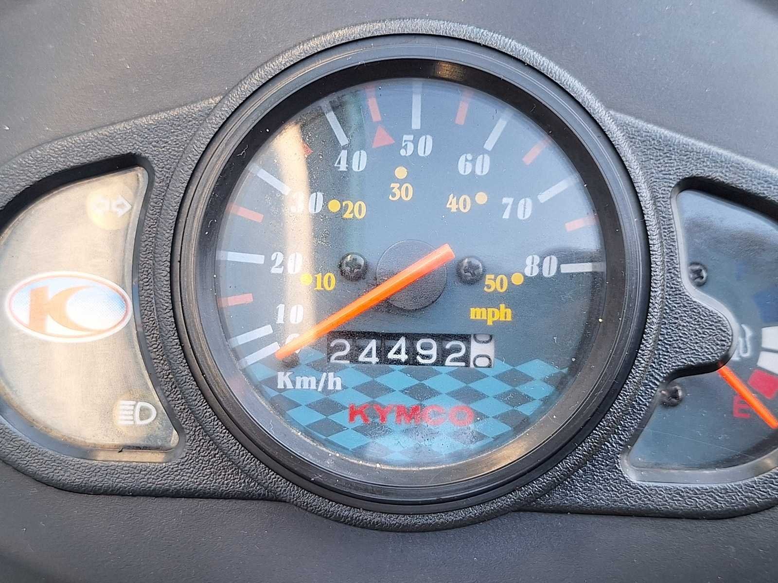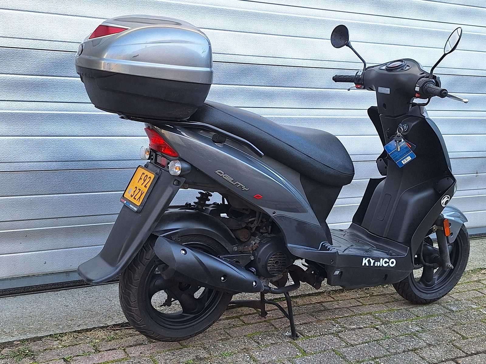 2 sleutels voor scooter, 2 sleutels voor topkoffer en 3 sleutels voor extra slot aanwezig. Accessoires: topkoffer en extra slot. Merk: Kymco Model: 45 km bromscooter 4takt Type: Agility Snelheid: 45km/h Kenteken: F923ZX Datum eerste toelating: 17-01-2015 Bouwjaar: 2015 Kleur: grijs Afgelezen kilometerstand: 24492km