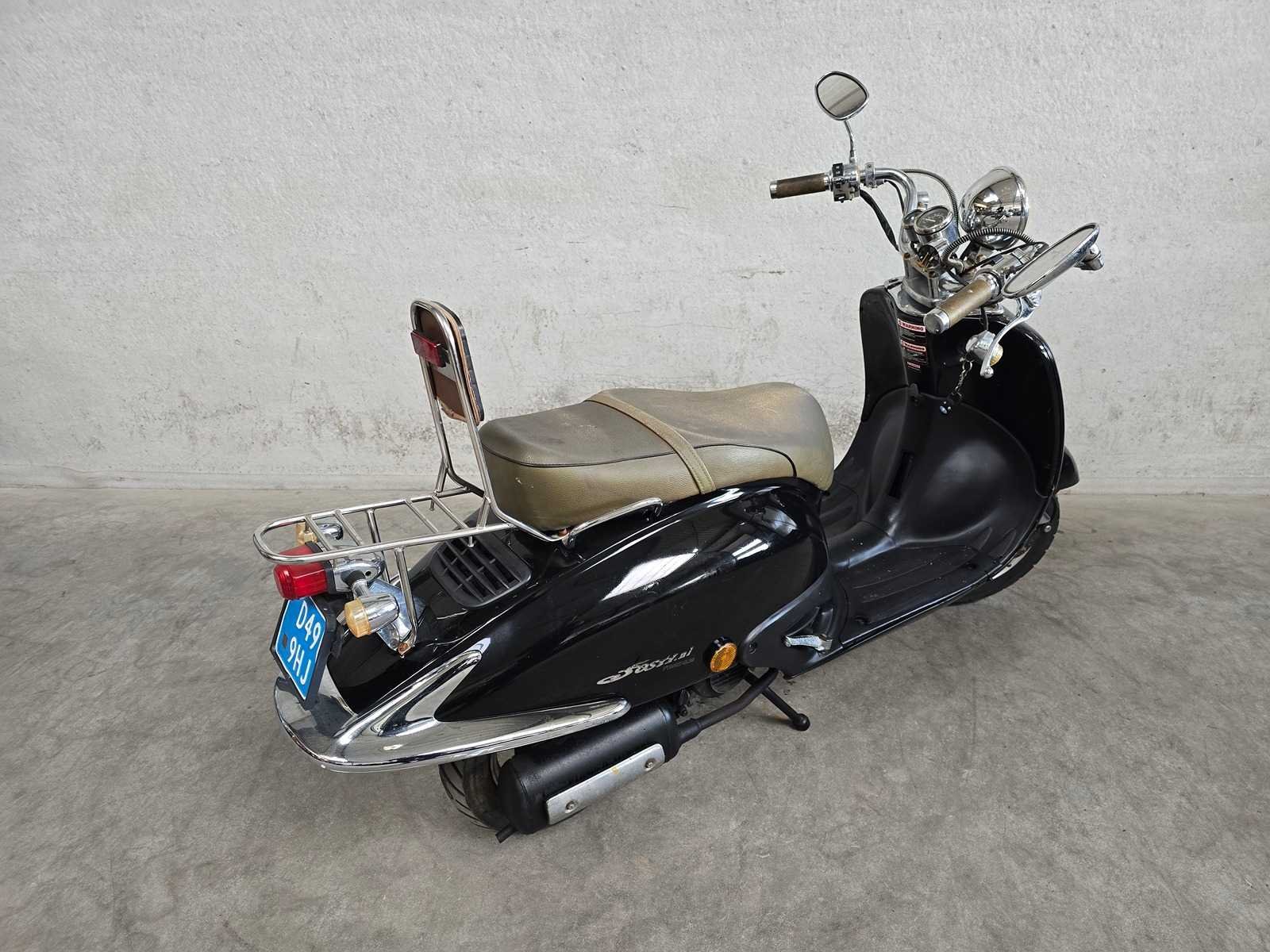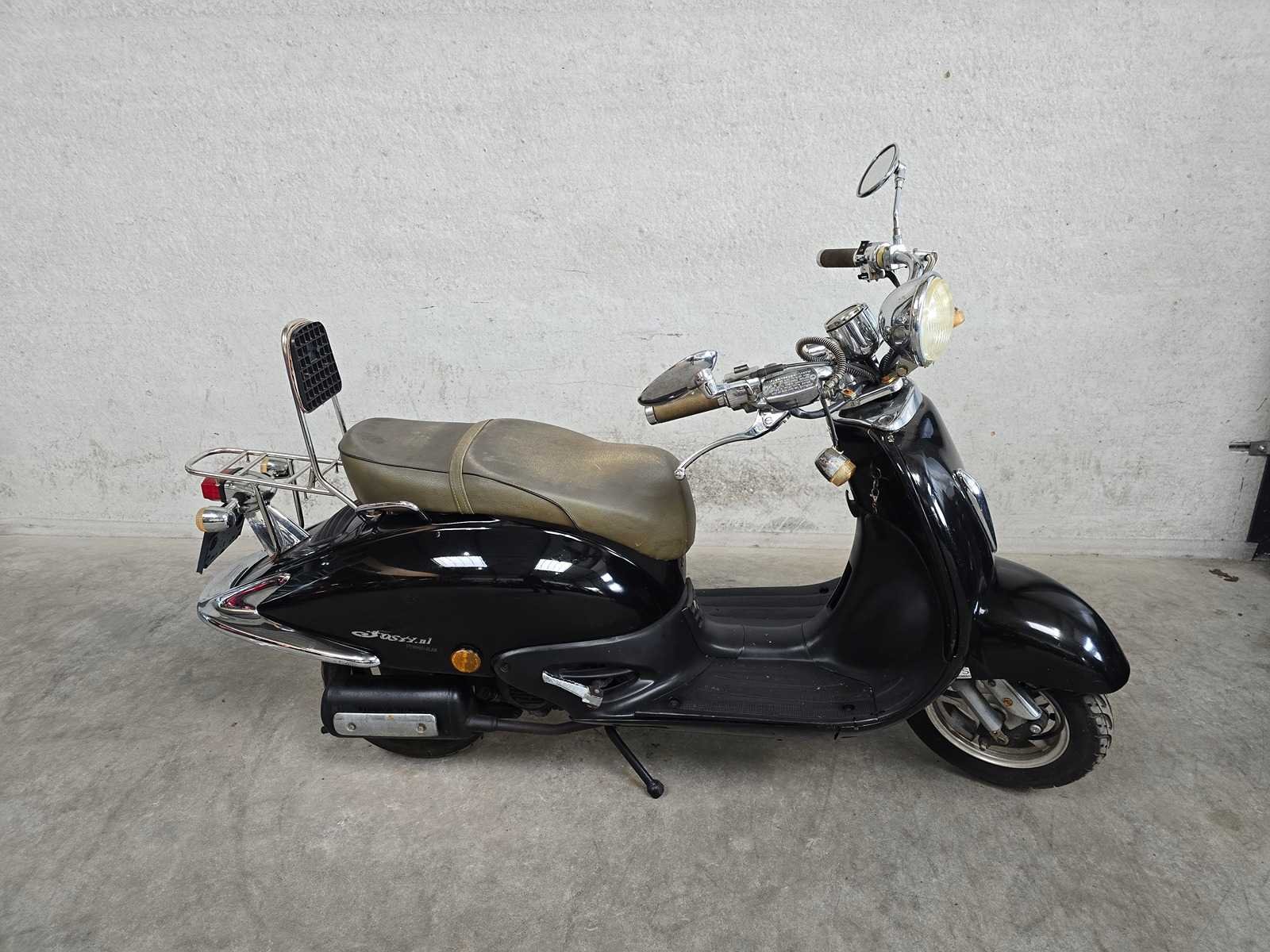 1 sleutel - loopt niet , banden lek - technische / onderhoud staat onbekend - Merk: Fosti Model: Snor Scooter Type: Retro Kenteken: D499HJ Datum eerste toelating: 03-09-2009 Transmissie: aut. Brandstof: benzine Kleur: zwart Bouwjaar: 2009