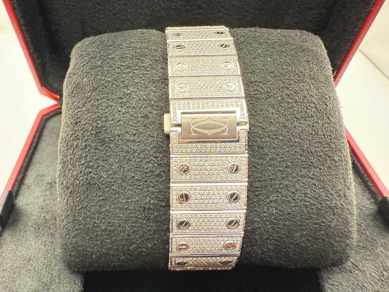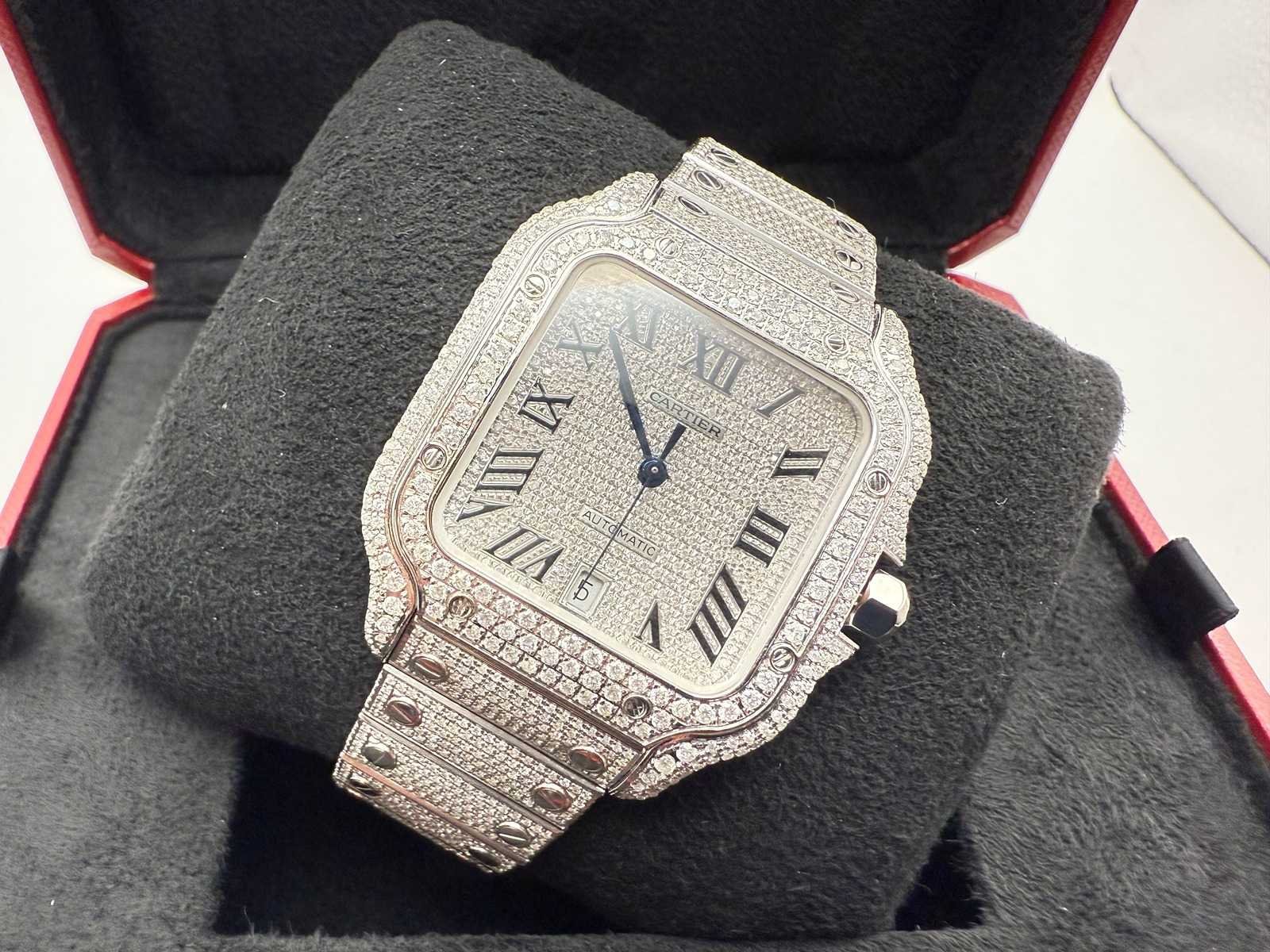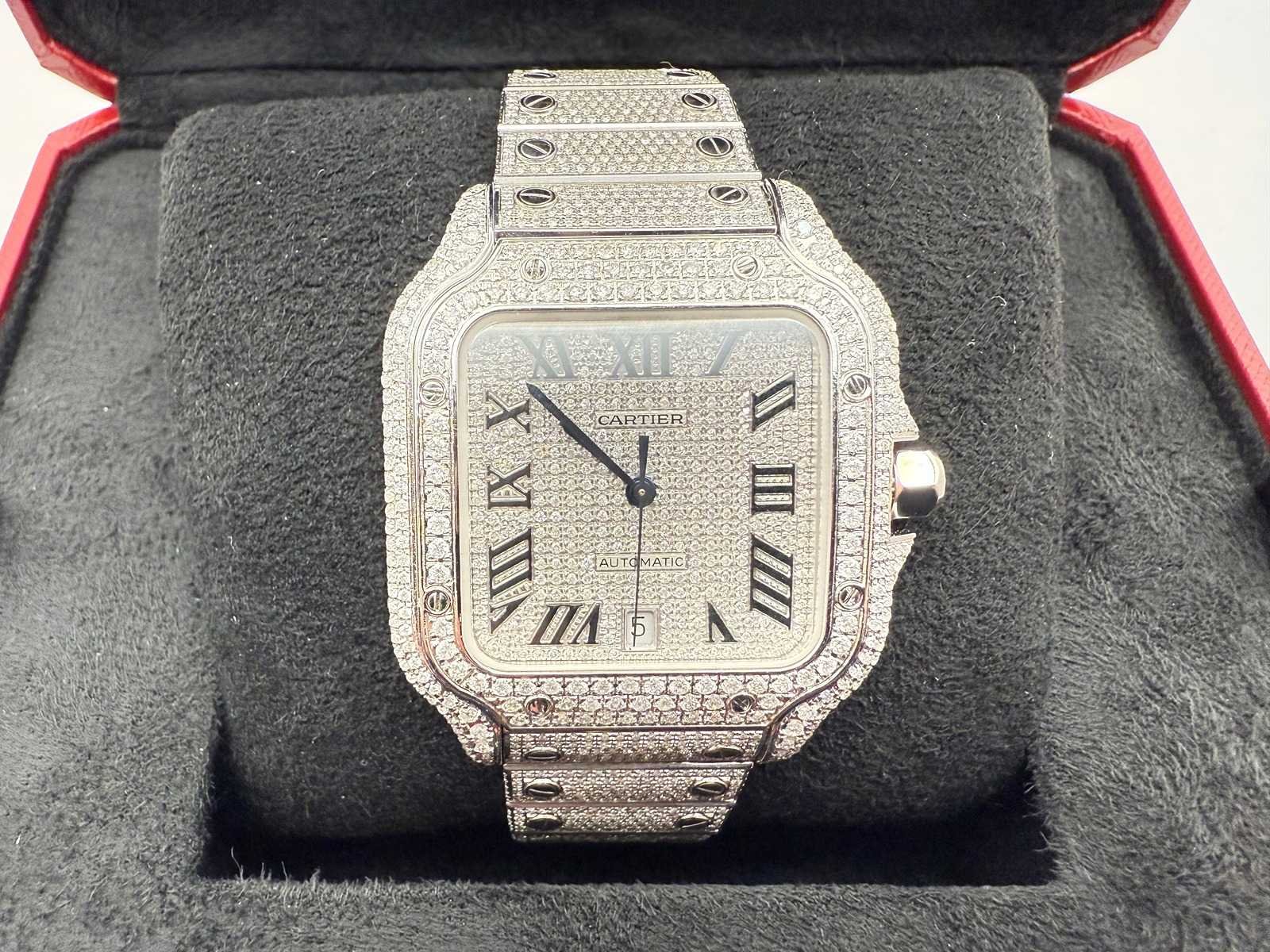 Conditie: Gloednieuw en ongedragen van 2020 • Diamantzetting: Volledig bezet met echte naturel VS diamanten, ook wel "iced out" genoemd • Complete Set: Inclusief originele Cartier doos, papieren en Cartier authenticatiepas • Referentienummer: WSSA0018 • Wijzerplaat: Iconische Cartier wijzerplaat met Romeinse cijfers volledig bezet met natural diamanten • Kast: Grote roestvrijstalen kast, perfect in harmonie met de fonkelende diamantzetting • Armband: Bijpassende roestvrijstalen armband, eveneens bezet met diamanten. Aanvullende Informatie: • Verpakking: Dit horloge wordt geleverd als een volledige set met de originele Cartier doos, officiële papieren en de Cartier authenticatiepas. Merk: Cartier Model: Santos Bouwjaar: 2020 Referentienummer: WSSA0018 Materiaal kast: Steel / Diamonds Materiaal horlogeband: Steel / Diamonds Materiaal sluiting: Steel / Diamonds Wijzerplaat: Diamonds Kastmaat: 39 mm